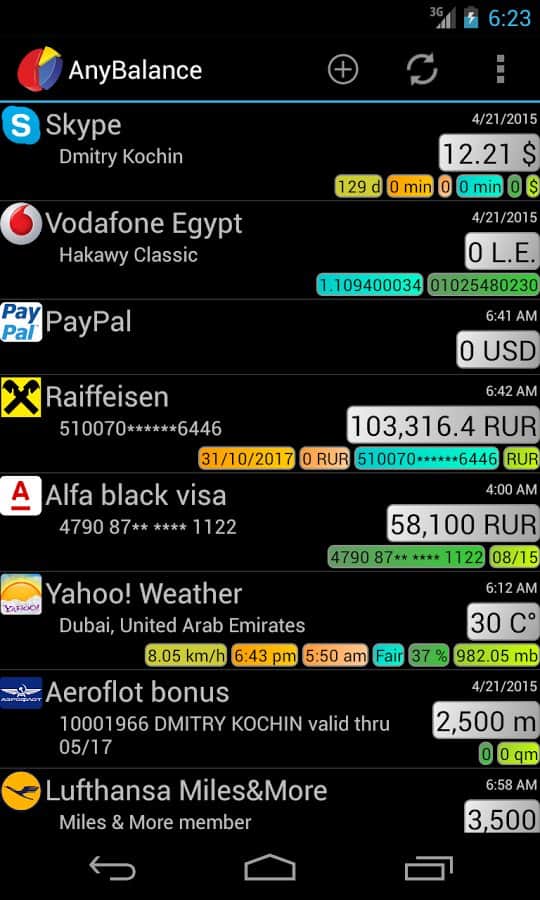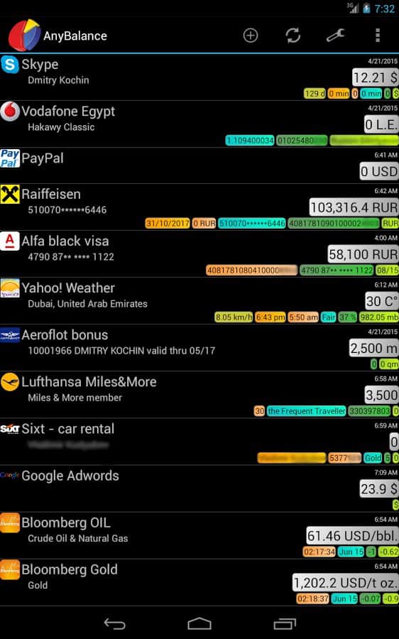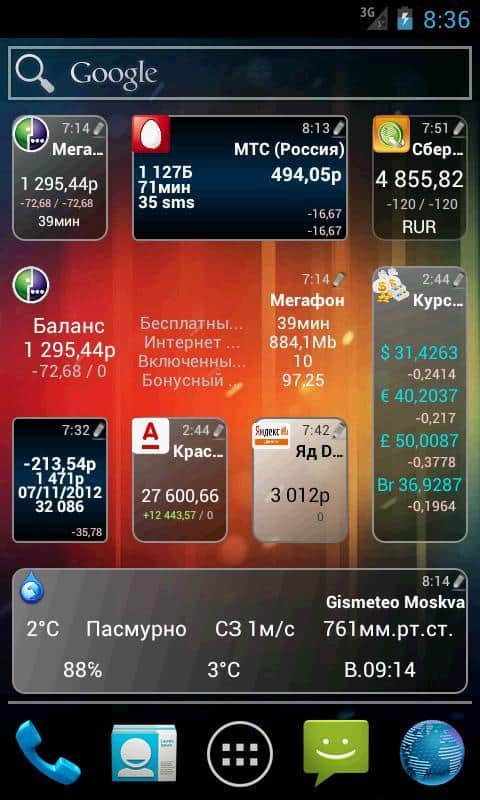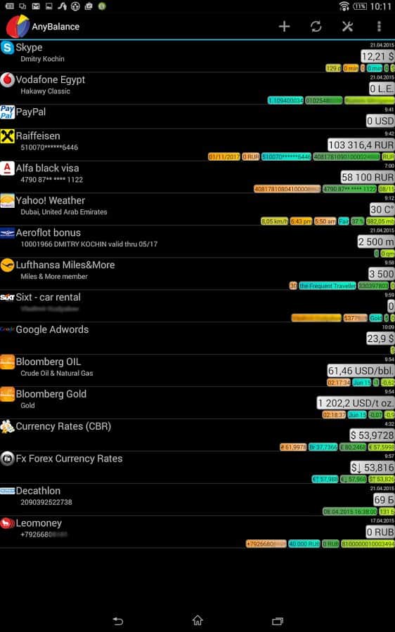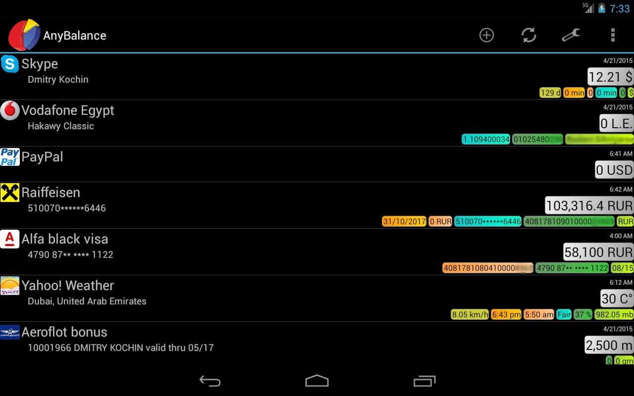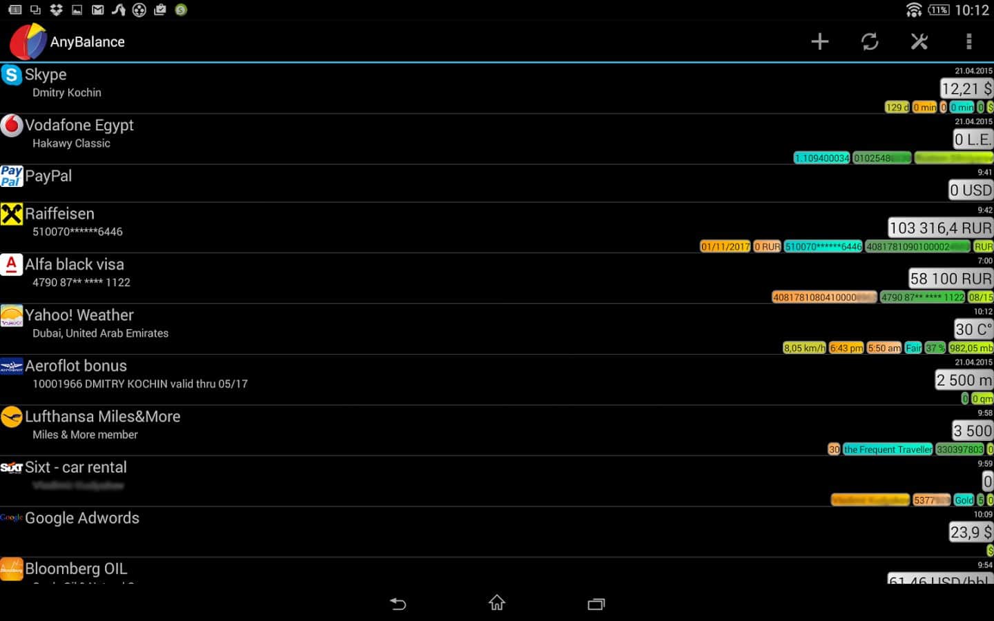 La información sobre el saldo de tu cuenta que puedes ver en gráficos y widgets con la aplicación AnyBalance. Puedes personalizar el programa para ti. AnyBalance muestra el saldo de tu factura de teléfono, proveedor de servicios de Internet, cuenta bancaria, SMS y MMS restantes. La aplicación soporta la mayoría de los proveedores rusos: MTS, Beeline y MegaFon. Además, puedes agregar un widget de tipos de cambio, seguimiento de correo y más.