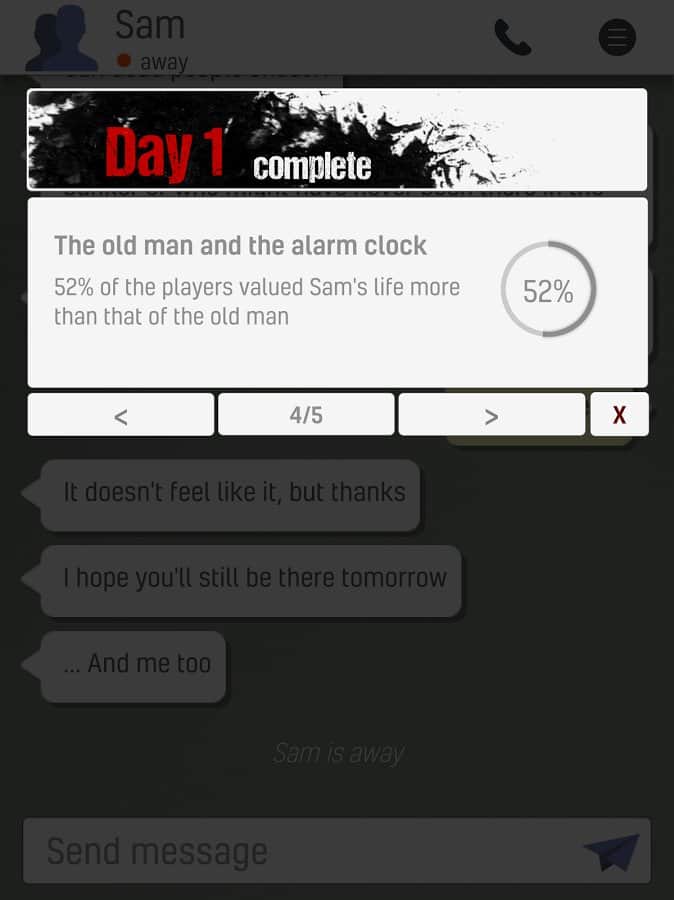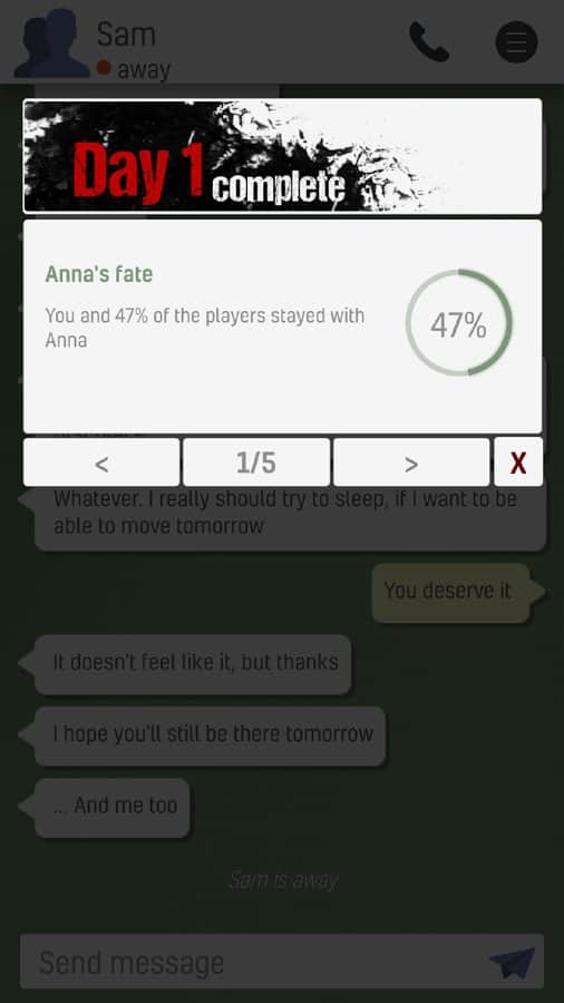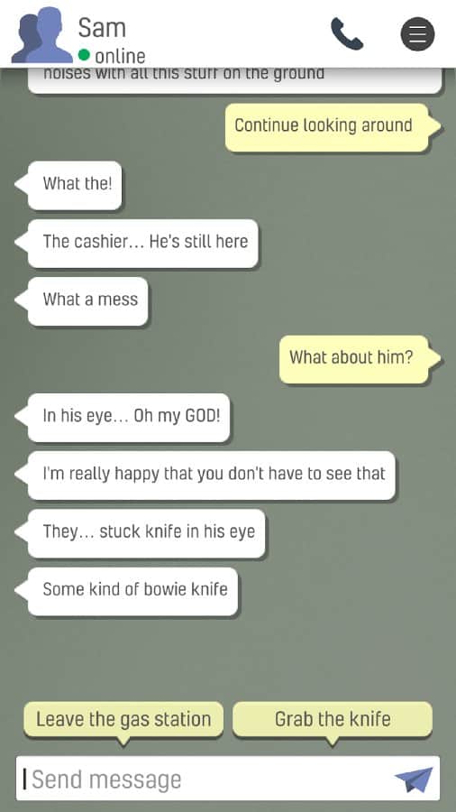 ¿Hay alguien ahí? Ciudad Muerta - un representante clásico del género de los textos de aventuras, hecho según todas las reglas y regulaciones de esta dirección de juego. Es decir, tienes que enviar mensajes telefónicos para comunicarte con el personaje principal y ayudarlo a salir de una situación difícil. También vale la pena señalar que los desarrolladores dieron a los jugadores casi completa libertad de acción y todos los desarrollos dependerán de ti. La historia seleccionó el tema popular de un Apocalipsis zombi, también tienes que ayudar a un hombre llamado Sam, que está atrapado sin comida ni agua dentro de la zona de evacuación rodeado de personas infectadas.