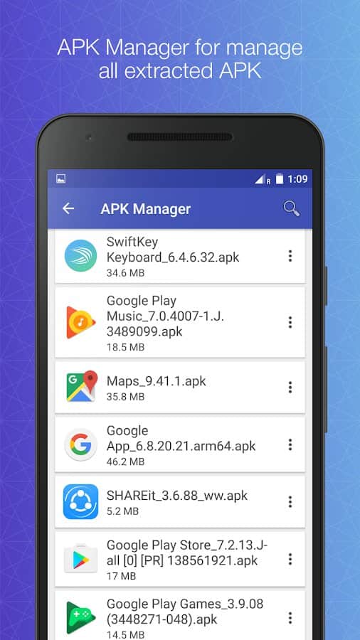 Esta aplicación te permite crear o generar el archivo APK y transferirlo a una tarjeta de memoria u otro dispositivo. Además, puedes ver la lista completa de aplicaciones ubicadas en la tarjeta de memoria de tu dispositivo.