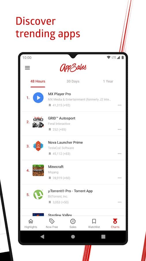 AppSales es tu guía confiable en el mundo de las aplicaciones. Gracias a nuestra función de búsqueda simple y conveniente, puedes encontrar fácilmente tus aplicaciones favoritas. Con la función de monitoreo de precios, siempre estarás al tanto de los últimos descuentos. Un diseño moderno y una interfaz intuitiva harán que el uso de nuestra aplicación sea aún más agradable. No pierdas la oportunidad de ahorrar dinero en tus aplicaciones favoritas: ¡suscríbete a las notificaciones y sigue nuestras actualizaciones!