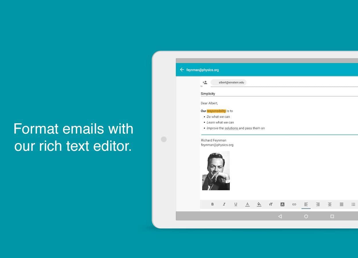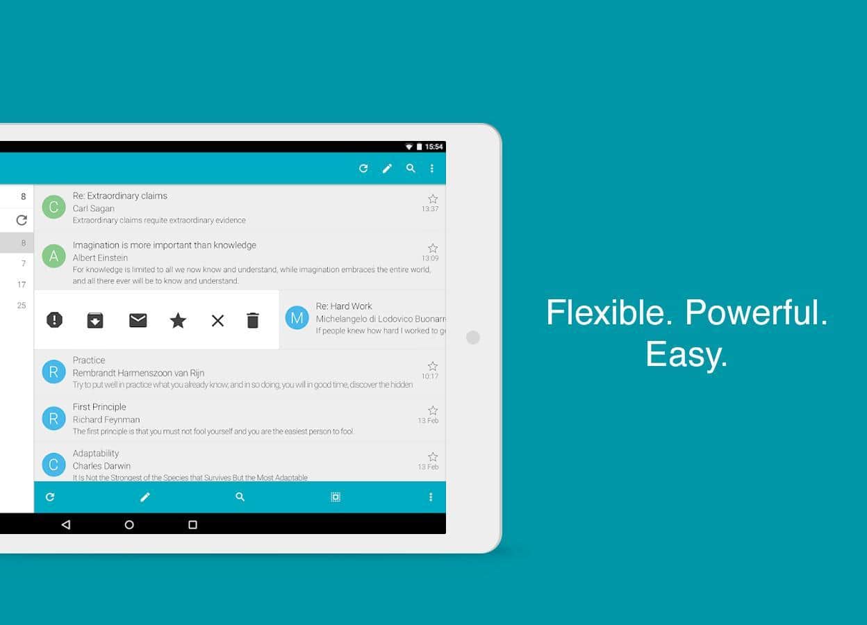 Entre la masa de clientes de correo de marca o universales, es difícil aclararse, pero si buscas una aplicación multifuncional y bien diseñada, presta atención a Aqua Mail, que puede hacer todo lo que se espera de una aplicación de correo estándar y un poco más. Funciona con todos los protocolos populares, por lo que no habrá problemas para conectar tu buzón de correo. Hay posibilidad de utilizar varias cuentas, y puedes añadir widgets con listas o contadores de mensajes en el escritorio. También hay una carpeta especial e inteligente para mensajes que requieren atención. Los archivos adjuntos pueden guardarse en la tarjeta de memoria.