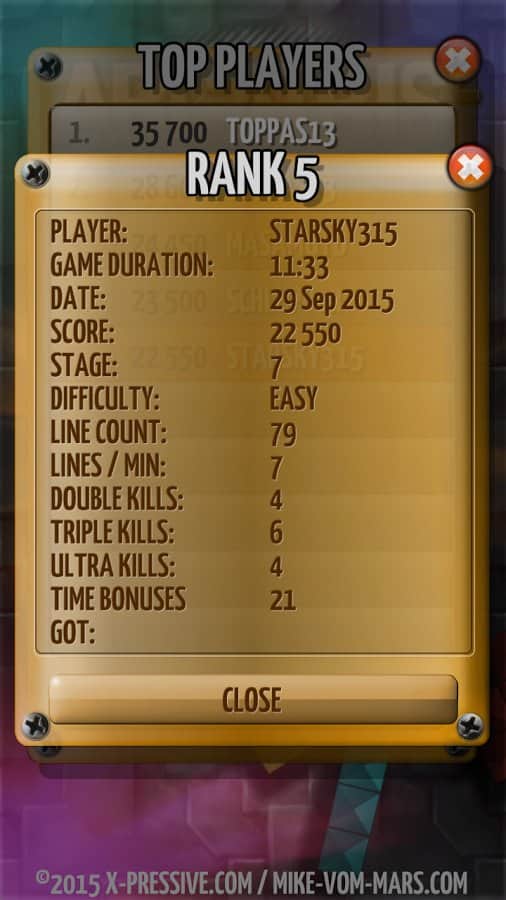 ARCATRIS 2 – Tetris en Android, con controles intuitivos y fáciles. Un juego en el que debes hacer diferentes formas que caen en filas para que no haya celdas vacías. Una vez que se completa la línea, desaparecerá y las otras permanecerán, acercándote a la derrota. Recoge la línea lo más rápido posible, rotando las partes que caen y gana recompensas y bonificaciones. Este juego pondrá a prueba, de hecho, tu reacción y habilidades. Elige tu modo de dificultad preferido, que va desde principiante hasta el final, adecuado para jugadores experimentados. Recoge suficientes puntos y compite con tus amigos por el primer lugar en la tabla de clasificación.