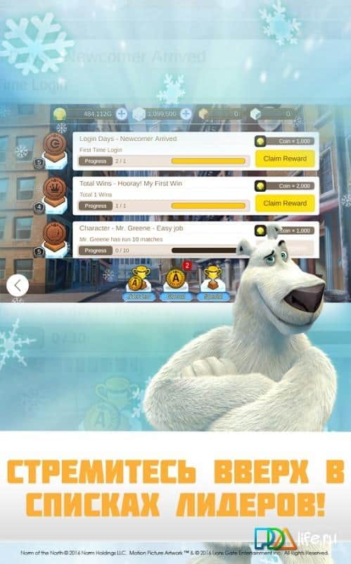 Reglas y Duraderas - película de dibujos animados que explica cómo un oso polar de buen corazón y los lemmings desafían a una gran corporación que quiere construir una ciudad para los ricos entre el hielo interminable del Ártico. Nuestros héroes viajan a la jungla de concreto de la metrópolis para dar batalla. Y frente a nuestros luchadores peludos encontrarán muchas aventuras. Arctic Dash: Norm de el Norte es un juego multijugador en línea, con desplazamiento horizontal, basado en la película homónima en la que jugarás como uno de los personajes tratando de llegar a la meta primero. Pero recuerda que a todos los participantes de la carrera se les permite no solo escapar, sino también usar todo tipo de trucos para lanzar carámbanos, botellas y otros objetos a una distancia donde no hay lugar para la generosidad deportiva, solo hay el deseo de ganar, sea como sea.