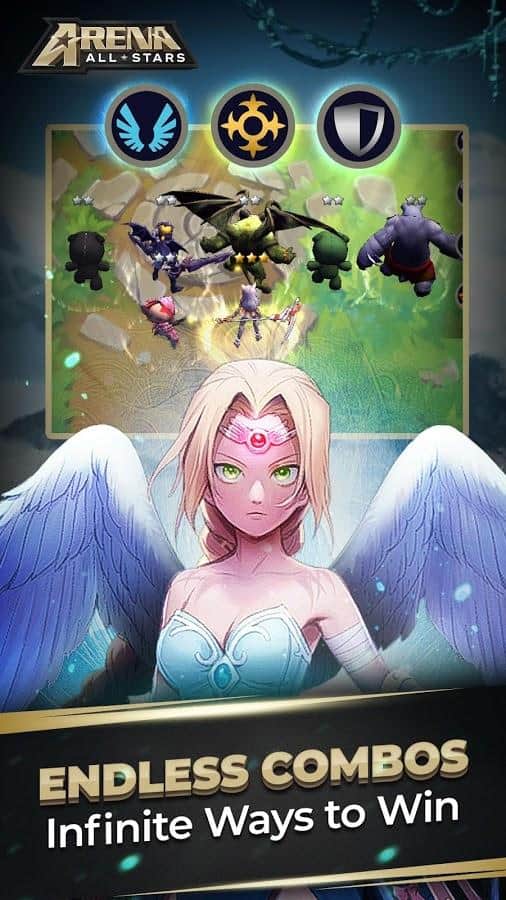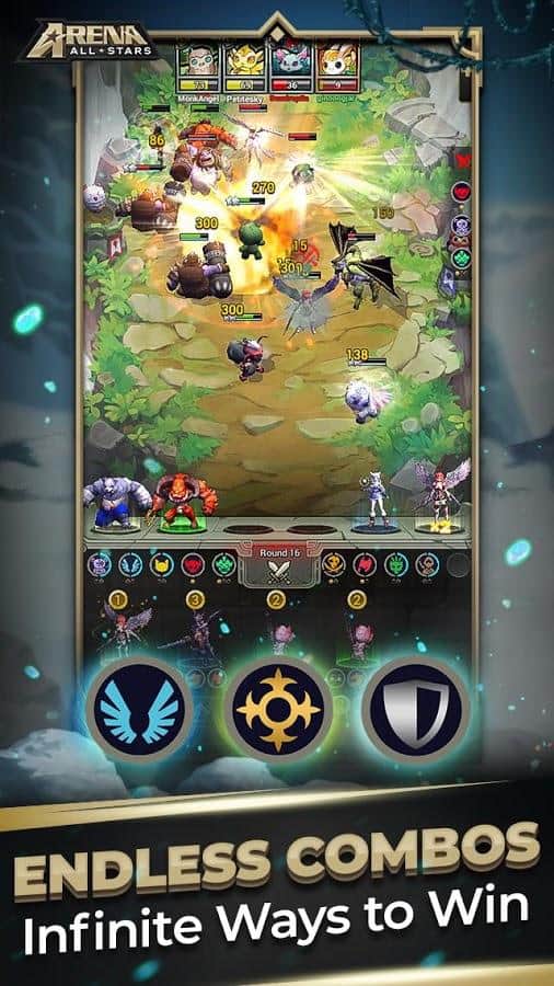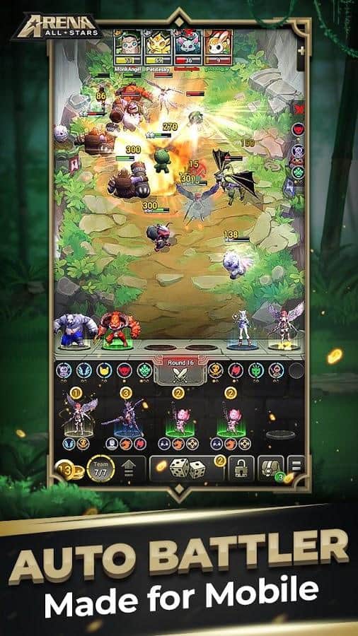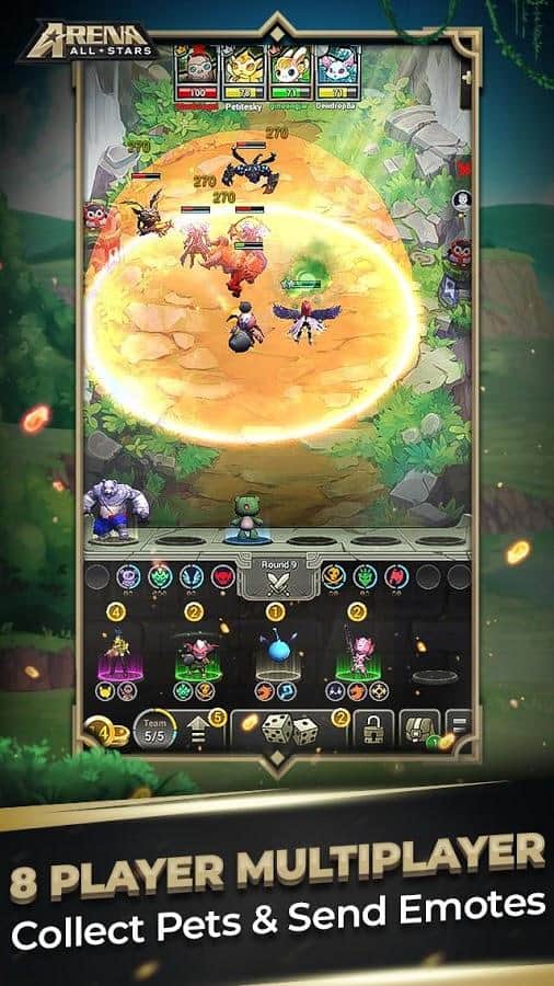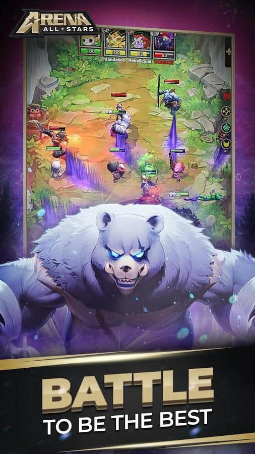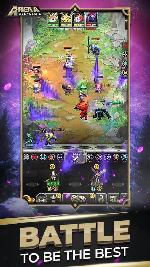 Allstars Arena - juego de estrategia por turnos en Android en el que debes luchar por el título de mejor. Elige entre una batalla épica en tiempo real con siete oponentes y una pelea rápida. Crea tu propio equipo único, implementa una estrategia bien planificada y trata de sobrevivir. Compite en torneos mensuales para ganar premios en la tabla de clasificación y ganar trofeos en el juego para clasificar más alto.
