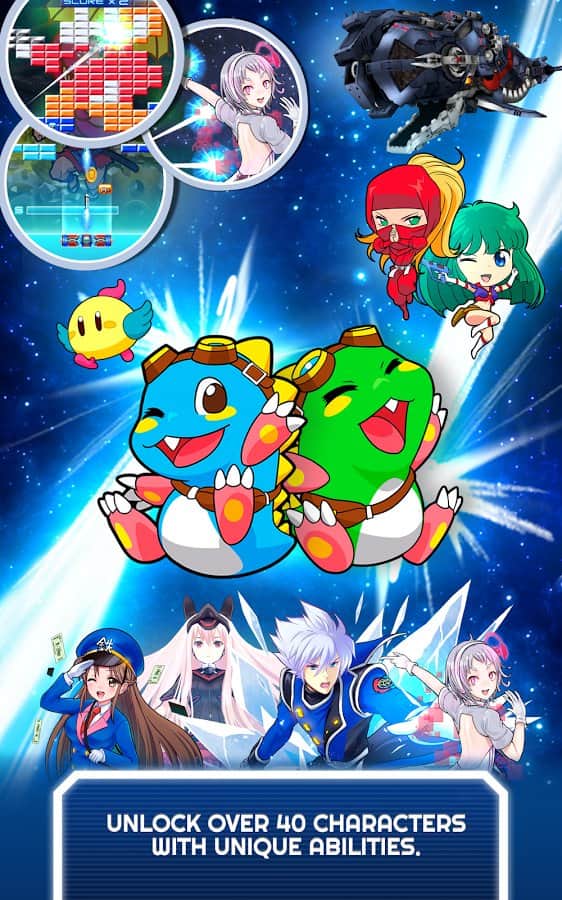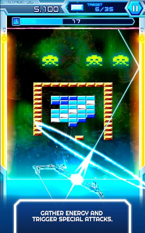 Arkanoid vs Space Invaders – juego de arcade para Android, que combina dos juegos populares como Arkanoid vs Space Invaders. En este juego, tu tarea principal es destruir enemigos y luchar contra poderosos jefes. Dispara a los enemigos y destruye tantos bloques con un solo golpe. Acumula tu energía y únete al modo de ataque destruyendo todo a su paso. Lucha con más de 20 habilidades diferentes y resuelve acertijos desafiantes. Derrota a los jefes en tres dimensiones y salva la galaxia. Descubre nuevos personajes, de los cuales hay más de 40.