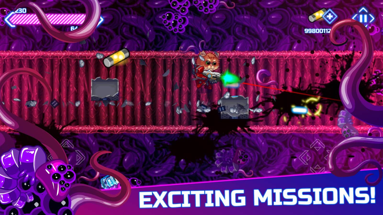 ¡Kitten Blindado es uno de los shooters más divertidos que se han lanzado en una plataforma móvil! Juega como super-koteyki, que necesita limpiar el área de mutantes, zombis y otras criaturas infernales. Incluye armadura de batalla y una escopeta de doble cañón.