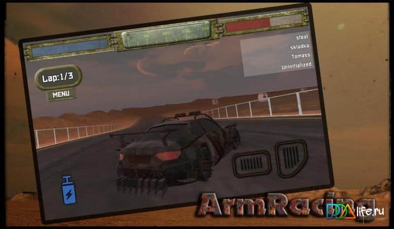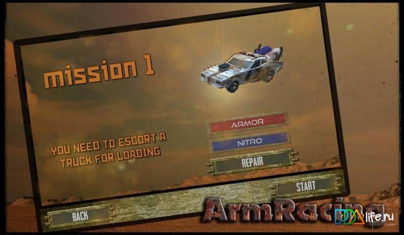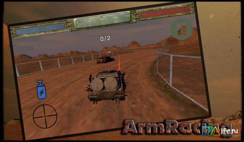 ArmRacing – carrera en Android donde conducirás a través del páramo y destruirás a los enemigos. En este juego te encuentras aleatoriamente en un planeta lejano después del colapso de la nave espacial. Los saqueadores locales desmantelaron tu nave espacial en pedazos, y ahora tu misión principal será vengarte de ellos por eso. Conduce por el páramo en tu coche rápido y utiliza varias armas para destruir hordas de enemigos y enormes mamíferos que habitan en este planeta. A tu disposición hay un gran arsenal de armas, un acelerador de nitro, múltiples coches y un garaje privado, donde podrás mejorar tu coche.