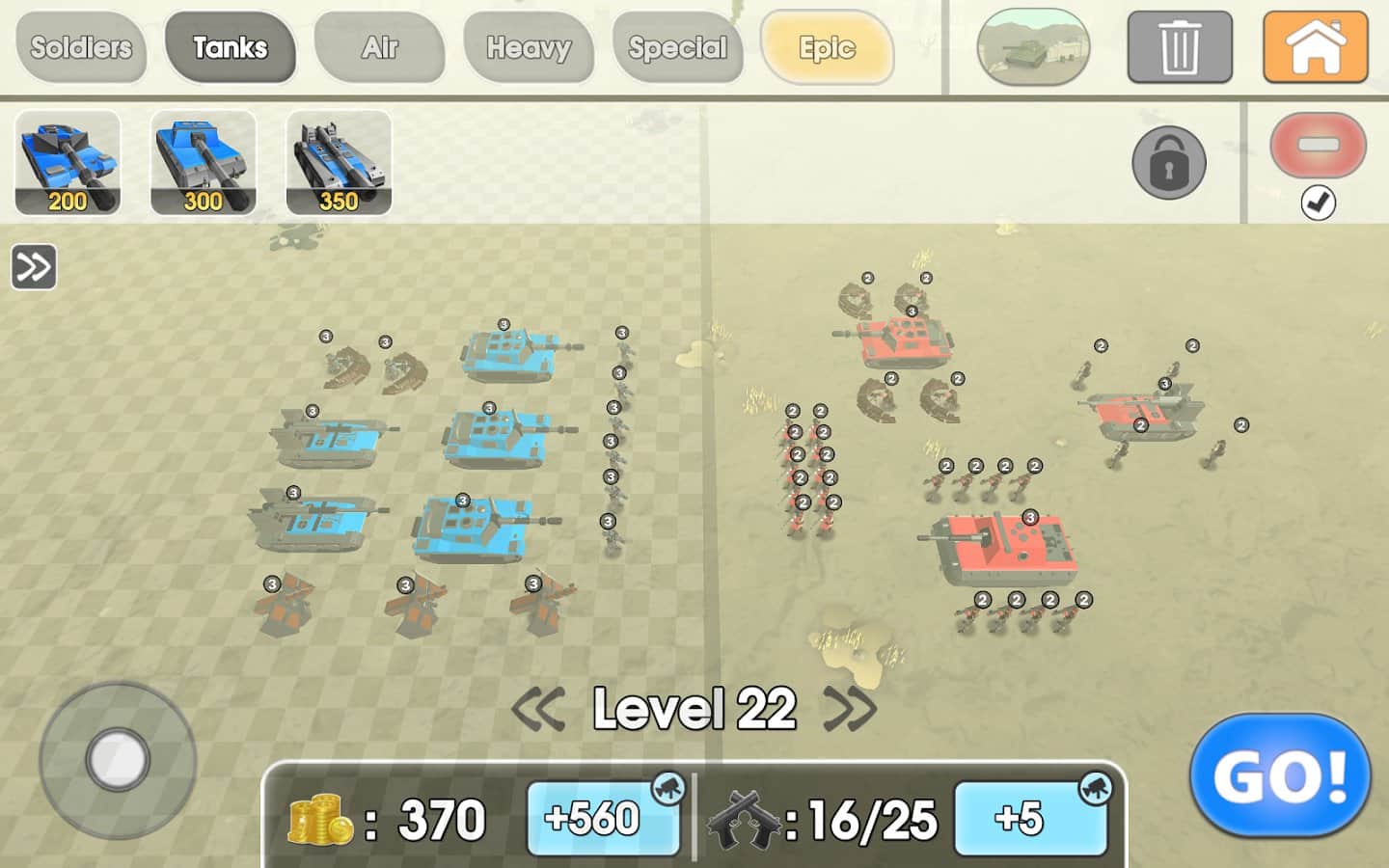 Simulador de Batalla del Ejército - este juego es muy simple y, al mismo tiempo, muy difícil. Tu tarea es bastante simple: destruir las unidades enemigas utilizando solo el dinero que te han dado. Hay muchas unidades, así que tendrás que saber qué es responsable de cada una de ellas, y si decides que la IA es demasiado tonta y simple, entonces intenta la fuerza soy en el modo en línea. Lucha con jugadores reales y muéstrales cómo se ve un verdadero General.