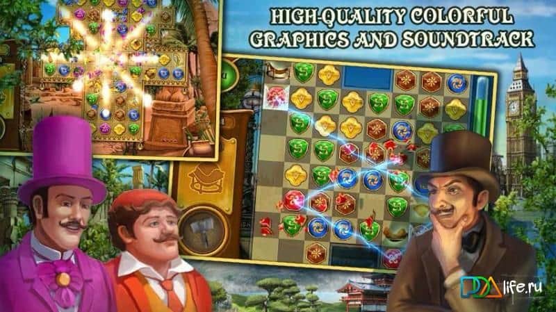 Alrededor del Mundo en 80 Días - un emocionante juego de rompecabezas en el género de "tres en raya", creado a partir de los motivos de la novela de Julio Verne. Junto a los personajes principales, el inglés Filecom Fogh y su amigo y asistente Passepartout, tendrás un fascinante viaje alrededor del mundo. ¡Esta es una oportunidad única para viajar de regreso al siglo XIX y visitar cuatro continentes! Pero solo tienes 80 días, durante los cuales necesitarás resolver muchos rompecabezas y sobrevivir a la emocionante aventura!