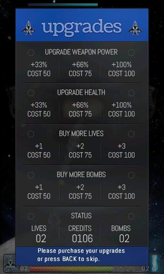 Mejoras de tu nave durante el juego