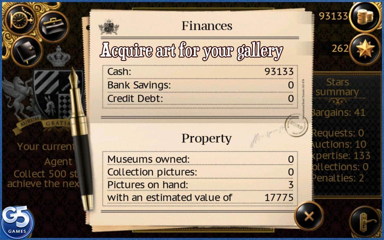 Art Mogul / art Mogul - En este juego, los desarrolladores han combinado varios géneros de juegos: objeto oculto, estrategia y simulación de negocios. Los desarrolladores del juego te ofrecen participar en emocionantes aventuras de subastas en busca de varios artículos y antigüedades.