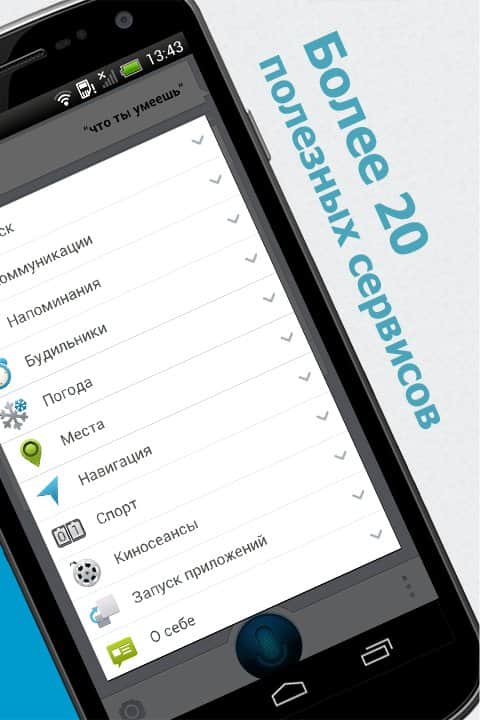 Asistente en idioma ruso, asistente móvil para tareas diarias. Este es un asistente virtual completo con control por voz que entiende el idioma ruso. Todo lo que tienes que hacer es hacer la pregunta verbal correcta para la cual podrás obtener una respuesta rápida y correcta.