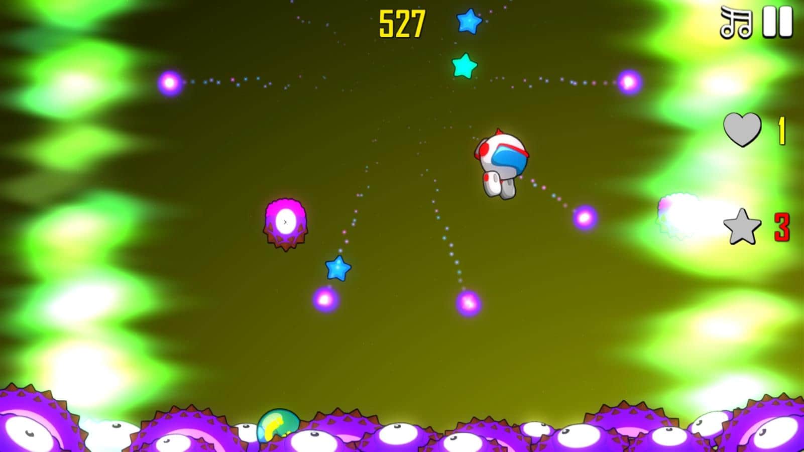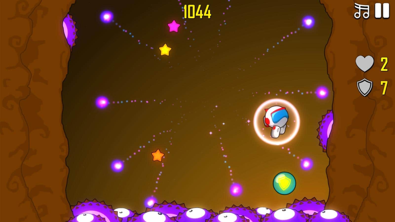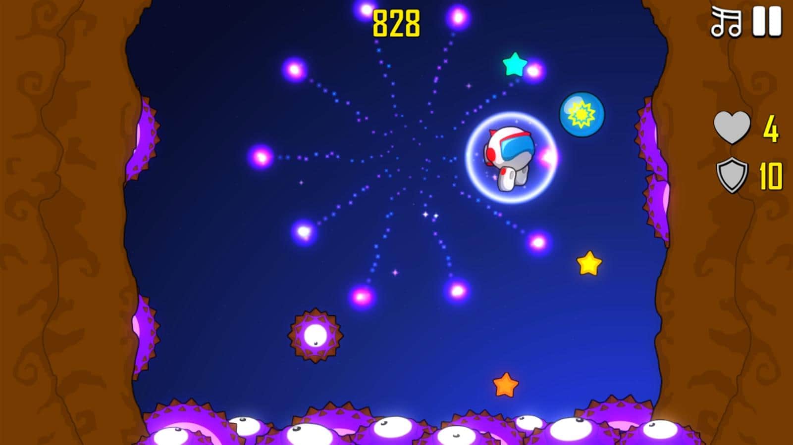 Astro Bouncer – un juego inspirado en Flappy Bird o Crossy Road, en el que deberás ayudar al astronauta a sobrevivir en un planeta extraño. Nuestro héroe ha tenido un problema con su nave espacial y ha realizado un aterrizaje de emergencia en un planeta desconocido. Resulta que en este planeta viven horribles alienígenas que quieren comérselo. Ayuda al astronauta a saltar lo más alto posible, utilizando bonificaciones adicionales que lo protegerán de daños gracias a un campo de fuerza, un traje magnético que atraerá más estrellas, y un cohete propulsor que lo ayudará a elevarse lo más alto posible. Explota minas de plasma y derrota a los enemigos con ondas de choque. Pon a prueba tu reacción y ve cuánto tiempo puedes sobrevivir antes de que te coman.