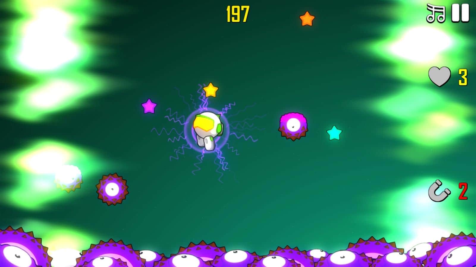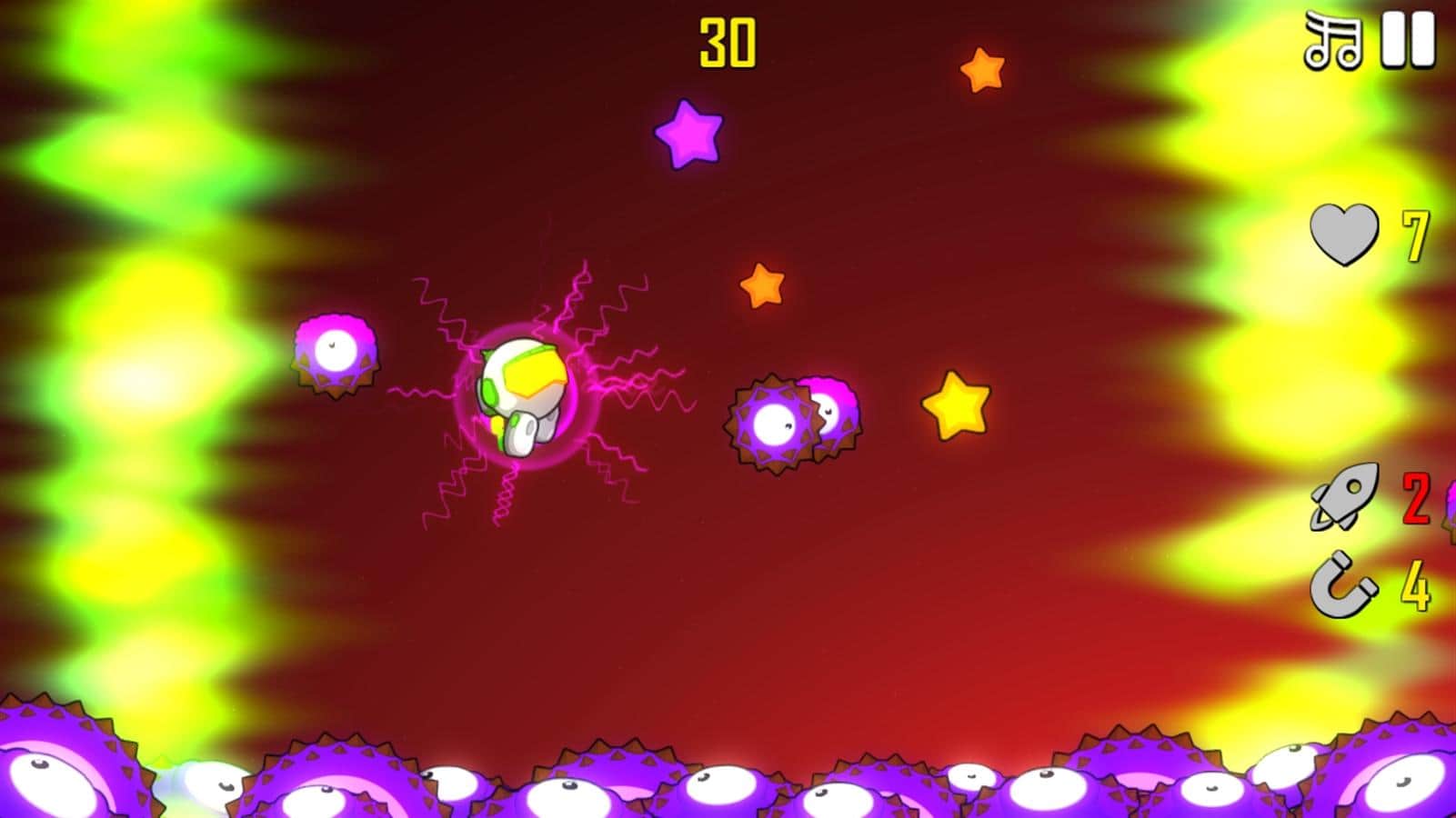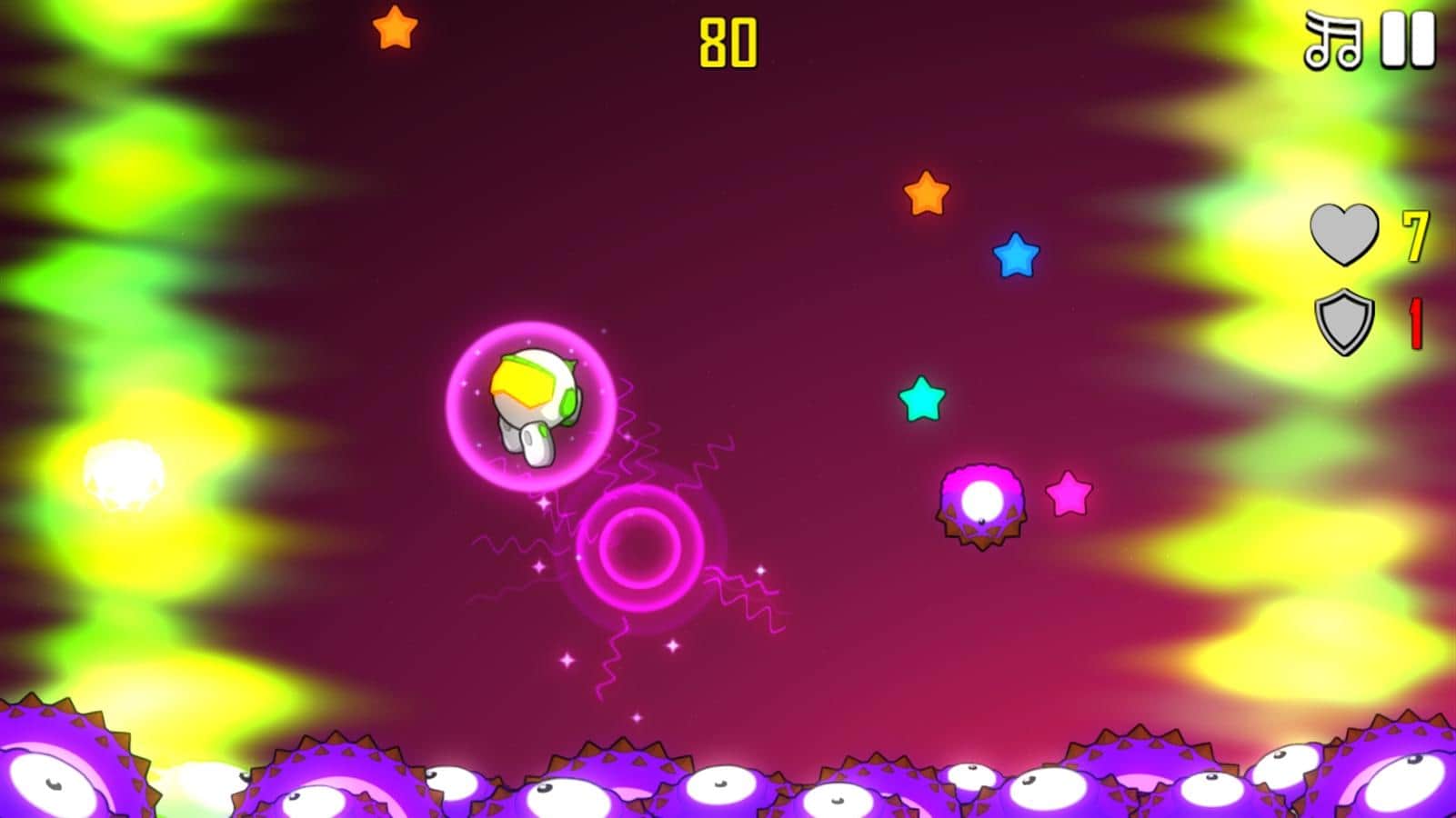 Astro Bouncer – un juego inspirado en Flappy Bird o Crossy Road, en el que deberás ayudar al astronauta a sobrevivir en un planeta extraño. Nuestro héroe ha tenido un problema con su nave espacial y ha realizado un aterrizaje de emergencia en un planeta desconocido. Resulta que en este planeta viven horribles alienígenas que quieren comérselo. Ayuda al astronauta a saltar lo más alto posible, utilizando bonificaciones adicionales que lo protegerán de daños gracias a un campo de fuerza, un traje magnético que atraerá más estrellas, y un cohete propulsor que lo ayudará a elevarse lo más alto posible. Explota minas de plasma y derrota a los enemigos con ondas de choque. Pon a prueba tu reacción y ve cuánto tiempo puedes sobrevivir antes de que te coman.