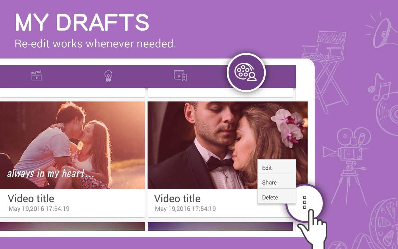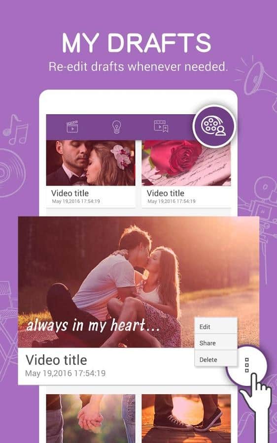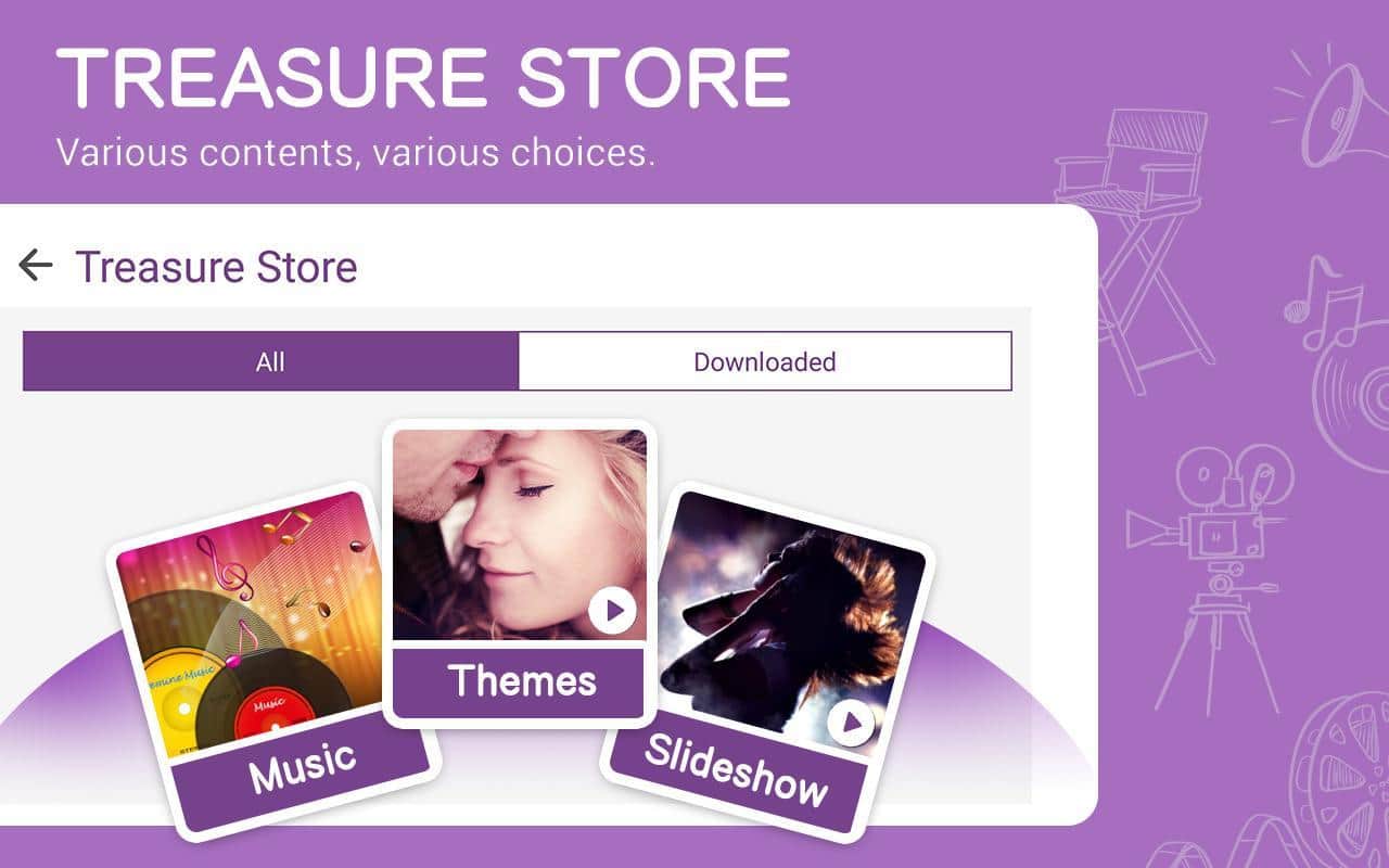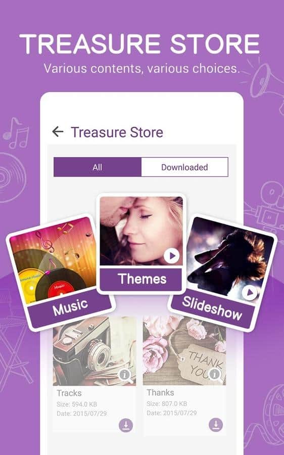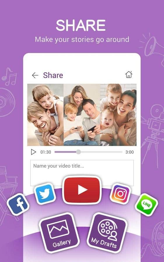 Las fotos para los videos se pueden agregar no solo desde la memoria del teléfono, sino también desde el almacenamiento en la nube. El video guardado se puede subir directamente a YouTube, compartirlo sin problemas en tus redes sociales favoritas o enviarlo a alguien por cualquier otro medio: cualquier reproductor reproducirá tu creación sin problemas.