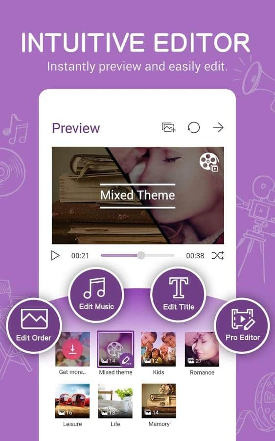 Este programa permite crear pequeños videoclips a partir de tus fotos, y hacerlo de la manera más simple posible. Para personalizar tu video, puedes utilizar temas y efectos integrados, así como agregar música de fondo. Si es necesario, se pueden incluir subtítulos.