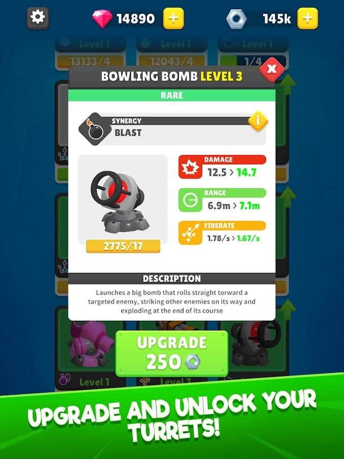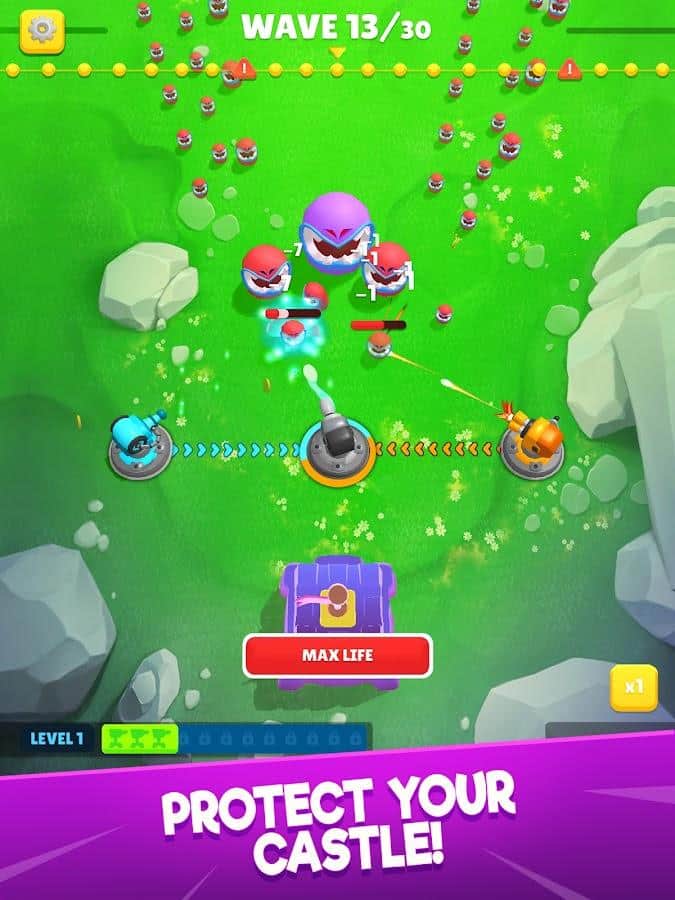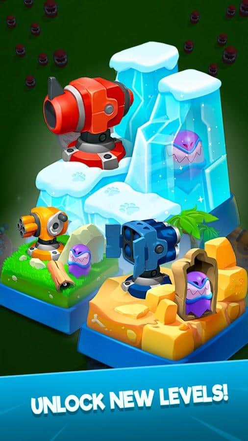 Defensa Automática - ¡No dejes que el enemigo penetre en tu territorio donde se encuentra una torre importante! Establece una fuerte defensa contra los enemigos: cañones con diversas capacidades, trampas instantáneas y más. Mejora tu equipo y desbloquea nuevos niveles con aún más aventuras debido a la dificultad aumentada. Prepárate para explorar no solo densos bosques y desiertos vacíos, sino también el espacio con una enorme cantidad de espacio desconocido. Completa misiones para obtener recompensas: diamantes, torres y otros objetos útiles.