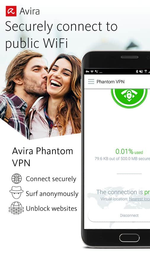 Avira Phantom del VPN ¿No quieres que alguien esté espiando tu historial de búsqueda en Internet? ¿O incluso quieres ocultar tu ubicación? Entonces esta aplicación te quedará perfectamente, no solo ocultarás tu dirección real, sino que también mejorarás la protección de tus datos. Todo lo que necesitas para comenzar a trabajar con esta aplicación es registrar una cuenta, luego iniciar sesión con ella y seleccionar la conexión VPN deseada. Todo es muy simple y claro, y además de esto, aquí hay una interfaz sencilla, que podrá entender todo el mundo.