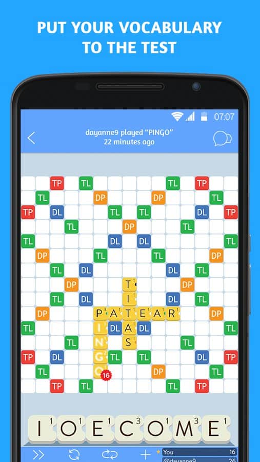 Aworded Crack es un juego de palabras para Android donde puedes hacer diferentes palabras con tus amigos. En este juego, tu tarea será formar diferentes palabras con las letras propuestas y organizarlas en la cuadrícula. Juega a este juego en cualquier momento libre y enriquece tu vocabulario con nuevas palabras. En el juego encontrarás varios modos de juego donde puedes jugar contra un ordenador inteligente o contra jugadores de todo el mundo. Logra excelentes resultados en el juego y acumula puntos. El juego cuenta con muchas funciones diferentes donde puedes usar los cuadrados de bonificación para obtener más puntos, y también duplicar o triplicar el valor de las letras.