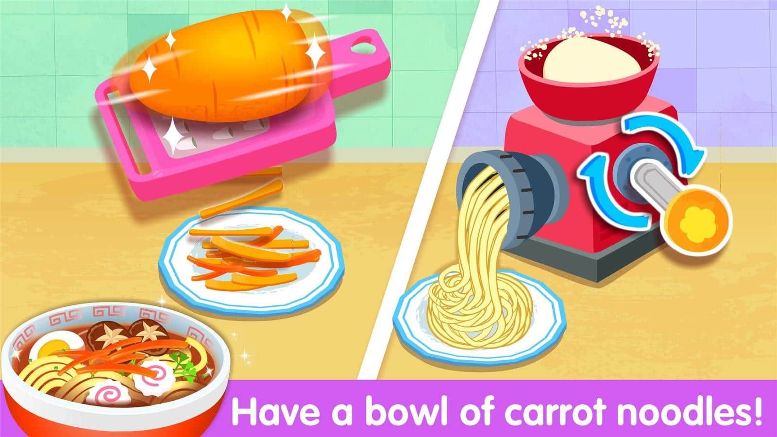 Panda Pequeño: una fiesta de cocina – si te encanta cocinar, entonces este juego será de tu agrado. Únete a la multitud de cocineros y cocina los platos más creativos y inusuales, deja volar tu imaginación. La condición principal – ¡que esté delicioso! Corta las verduras y pica finamente, hierve, fríe y hornea. Trata a tus colegas y amigos con deliciosos postres ligeros, sirve en una hermosa presentación de los primeros y segundos platos. Aprende todos los secretos de las recetas sabrosas y obtén. Tienes 10 comidas saludables y un mar de canciones divertidas.