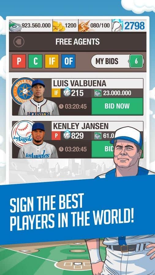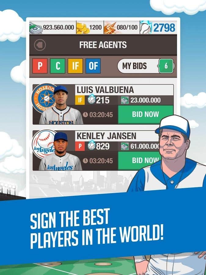 Gerente General de Béisbol 2015 – conviértete en el Mánager de tu propio equipo de béisbol en este juego para Android. En este juego debes construir tu propio equipo de jugadores de béisbol reales y llevarlos a la victoria en la Liga Premier. Firma contratos con los mejores jugadores, entrénalos según tu propio diseño y busca patrocinadores que ayuden a llevar a tu equipo a la victoria. Participa en partidos amistosos, torneos y logra los mejores resultados, subiendo en la tabla de clasificación. Obtén una variedad de bonificaciones para llevar a tu equipo a la victoria y camina hacia el partido más importante de tu vida. Compite con otros jugadores y ganales con facilidad.