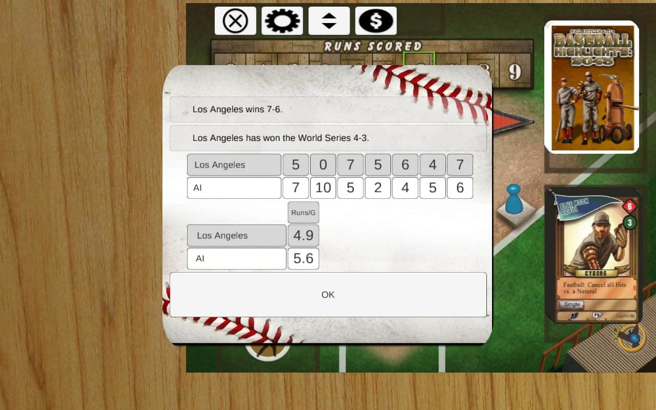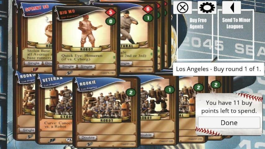 Baseball Highlights 2045 - versión de Android del popular juego de cartas coleccionables cuyo creador es Mike Fitzgerald en conjunto con el estudio Eagle-Gryphon Games. La versión original del juego tuvo una circulación envidiable y, como consecuencia, fue lanzada digitalmente en la mayoría de las plataformas de juegos, incluyendo móviles. La principal diferencia con la mayoría de los representantes del género es que los creadores decidieron apartarse de las tramas habituales de RPG y prestar atención a una historia en una dirección completamente diferente. La historia de Baseball Highlights 2045 se desarrolla en el futuro, en los días en que el fútbol americano ocupaba el lugar principal en los deportes, pero los aficionados al béisbol continuaban creyendo que su deporte favorito volvería a liderar. Tu tarea es lograr el regreso del béisbol a las posiciones de liderazgo. La jugabilidad se presenta en el estilo clásico de CCG.