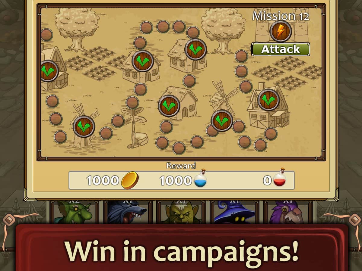 Bash Towers – estrategia para Android, con batallas por turnos y combates. En este juego te convertirás en el gobernante de una enorme torre, que debes desarrollar, reclutar un ejército de soldados, aprender una variedad de hechizos y desarrollar tus criaturas de combate. En este juego multijugador puedes desafiar a jugadores reales de todo el mundo y competir con ellos para ser el mejor. El juego continuará hasta que una de las torres de los oponentes no caiga. La mitad del éxito de tus batallas dependerá de extraer recursos que te ayudarán a mejorar el ejército, obtener nuevas armas y desarrollar la infraestructura de la torre. Considera cuidadosamente cada paso y derrota al oponente.