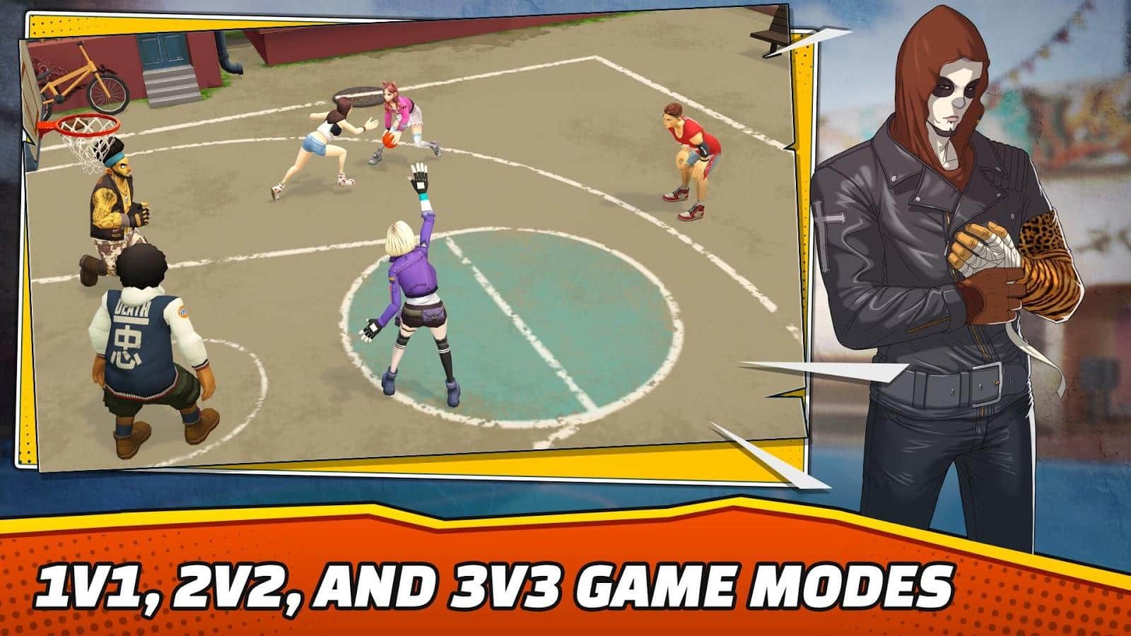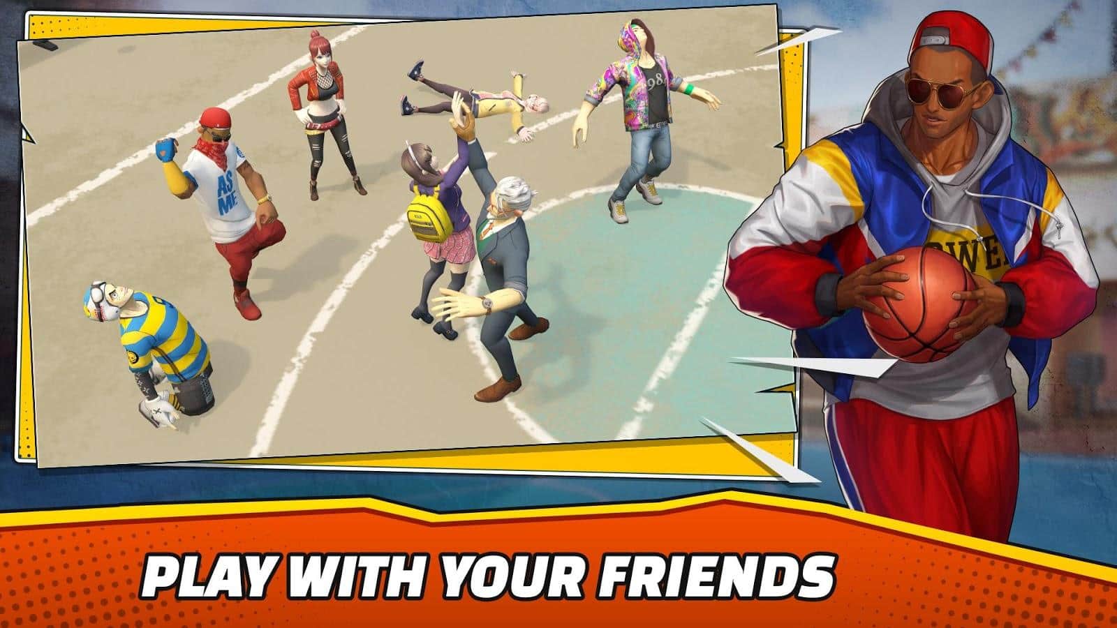 ¡Equipo de baloncesto 2k18 - estrellas del mate en batalla callejera! – juego de baloncesto para Android donde jugarás en varios lugares de la ciudad. Toma el control de tu jugador de baloncesto y juega contra oponentes en solitario o reúne a tu equipo invencible. Tu personaje y todos los jugadores tendrán técnicas únicas y trucos ingeniosos que te permitirán esquivar a un oponente y lanzar el balón en la canasta. Coloca bloqueos y sigue los grandes lanzamientos, ganando puntos y obteniendo bonificaciones. Compra disfraces únicos para los personajes y desbloquea nuevas canchas de baloncesto.