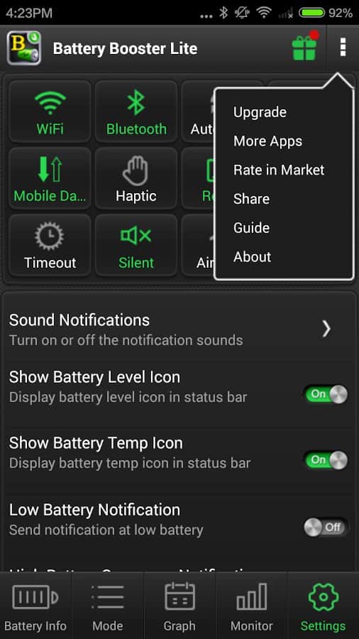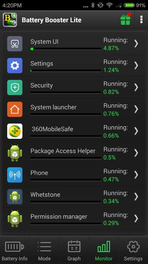Battery Booster - Una aplicación para Android que te ayudará a monitorear la carga de tu batería. Reunirá para ti una gran cantidad de datos útiles, así como mostrará cuánto tiempo más funcionará tu batería sin recarga. Tiene varios widgets atractivos. Podrás ver cuánta batería consume cada una de las aplicaciones en ejecución, o cuánto tiempo aguantará tu batería si escuchas música. Todas las funciones de visualización o recopilación de datos en esta aplicación son completamente personalizables, y podrás modificarlas a tu gusto.