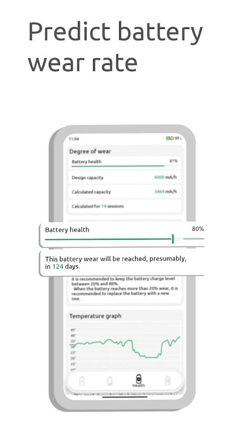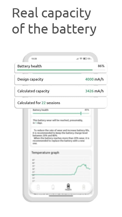 BatteryOne proporciona datos útiles sobre el estado de tu batería. Independientemente de si estás interesado en la velocidad de carga o descarga, voltaje, temperatura, capacidad actual o consumo promedio. No es un secreto que la batería del teléfono tiene un recurso limitado, que depende de muchos factores, desde la temperatura ambiente hasta la frecuencia de carga. Sin embargo, cada usuario puede monitorear su estado en tiempo real. Un algoritmo único para calcular la capacidad real de la batería tiene en cuenta todas las sesiones de carga combinadas en una, lo que permite lograr una alta precisión en el resultado.