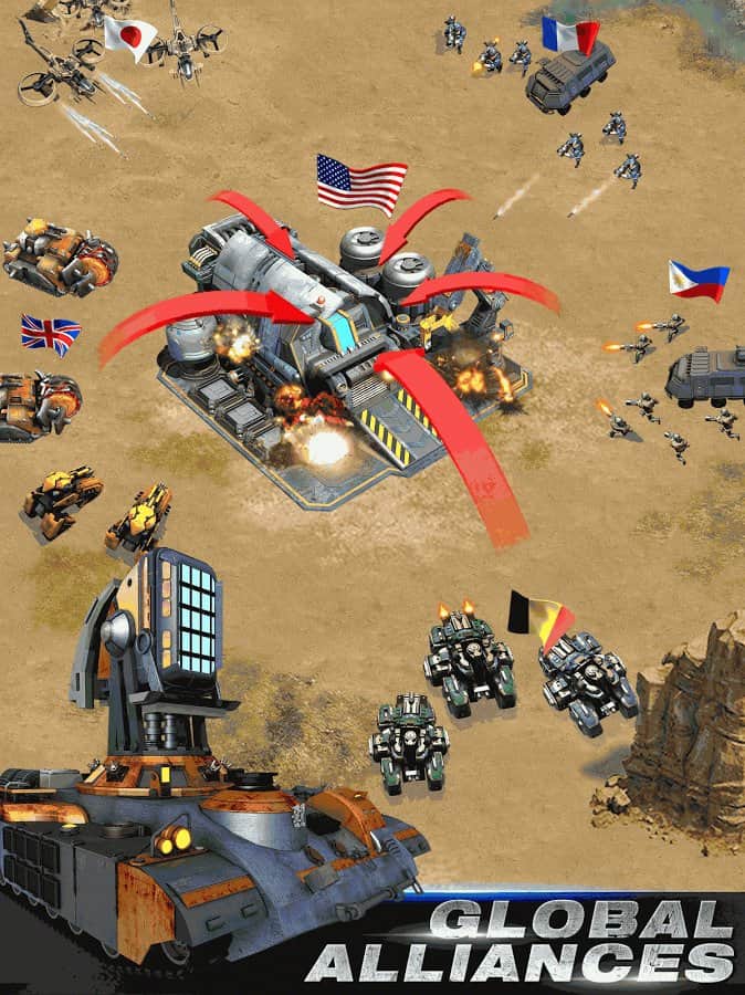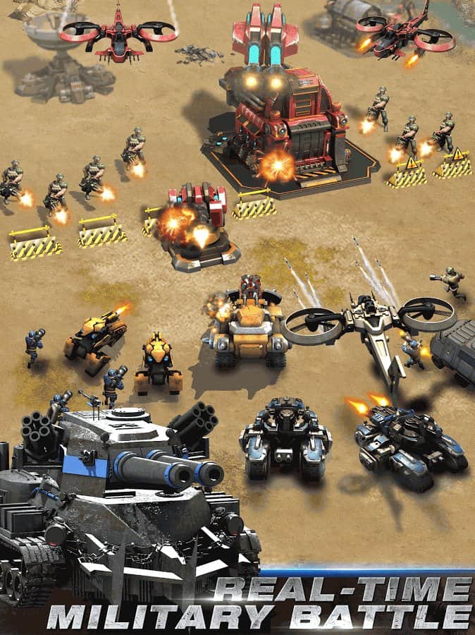 Battle Alert 3 – estrategia para Android, donde aceptas tu parte en grandes batallas militares. En este juego te convertirás en el comandante de tu vasto ejército y lo llevarás a la batalla por el derecho a poseer nuevos territorios. Tu tarea principal será atacar bases enemigas y librar una guerra brutal. Tu ejército consistirá no solo en soldados, sino que también tendrás a tu disposición una gran cantidad de diferentes técnicas. Obtén recursos valiosos y aprende nuevas tecnologías para vencer a tus oponentes y ganar sin ningún esfuerzo especial. El juego cuenta con dos modos de juego donde puedes jugar con jugadores de todo el mundo.