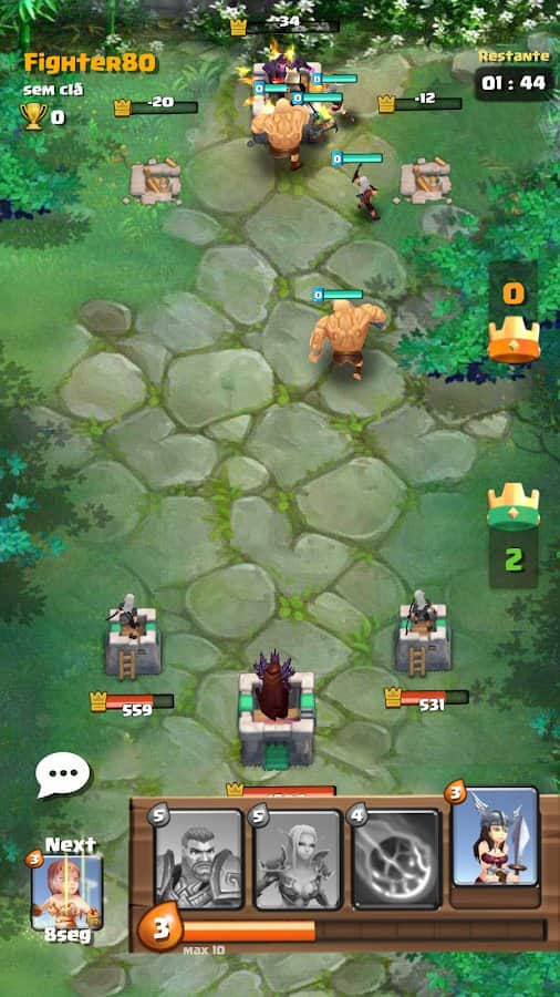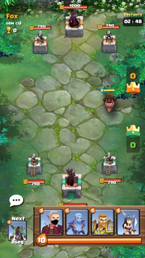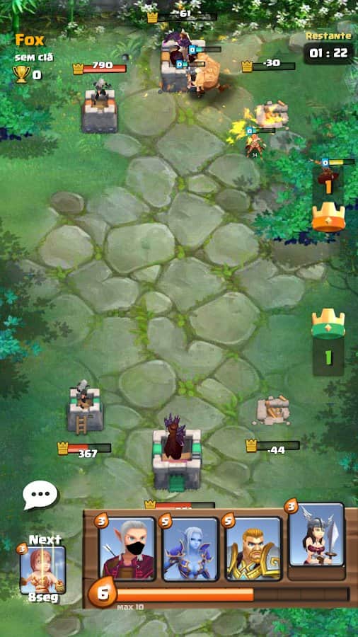 Héroes de la Arena de Batalla - estrategia en Android donde serás transportado al campo de batalla donde tu tarea es destruir la torre enemiga. Participa en la batalla de héroes donde, utilizando sus habilidades y diferentes fortalezas, puedes derrotar al enemigo. Desarrolla una estrategia que te ayude a ganar la batalla y destruir la torre enemiga. Tu equipo estará compuesto por diferentes personajes, cada uno de los cuales tiene un papel que desempeñar. Necesitas destruir todas las torres y llegar al Palacio del enemigo para obtener tres coronas. Consigue toda la colección de coronas y desbloquea nuevas arenas.