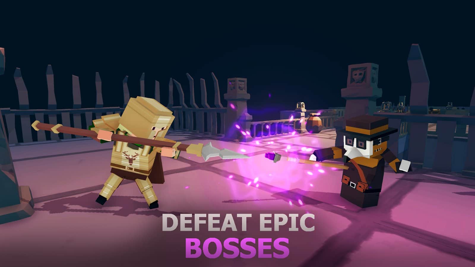 Cube Dungeon Battle – un juego genial donde puedes luchar contra jefes y enemigos más pequeños. Usa diversas armas y poderes geniales y obtén recompensas. Acumula suficiente experiencia para desbloquear el acceso a nuevas habilidades y ataques. Disfruta del modo infinito y encuentra aliados y sedúcelos a tu lado. Colecciona cofres del tesoro y repón tus suministros, conoce a los aldeanos y las aldeas cercanas y ayúdalos a deshacerse de los enemigos.