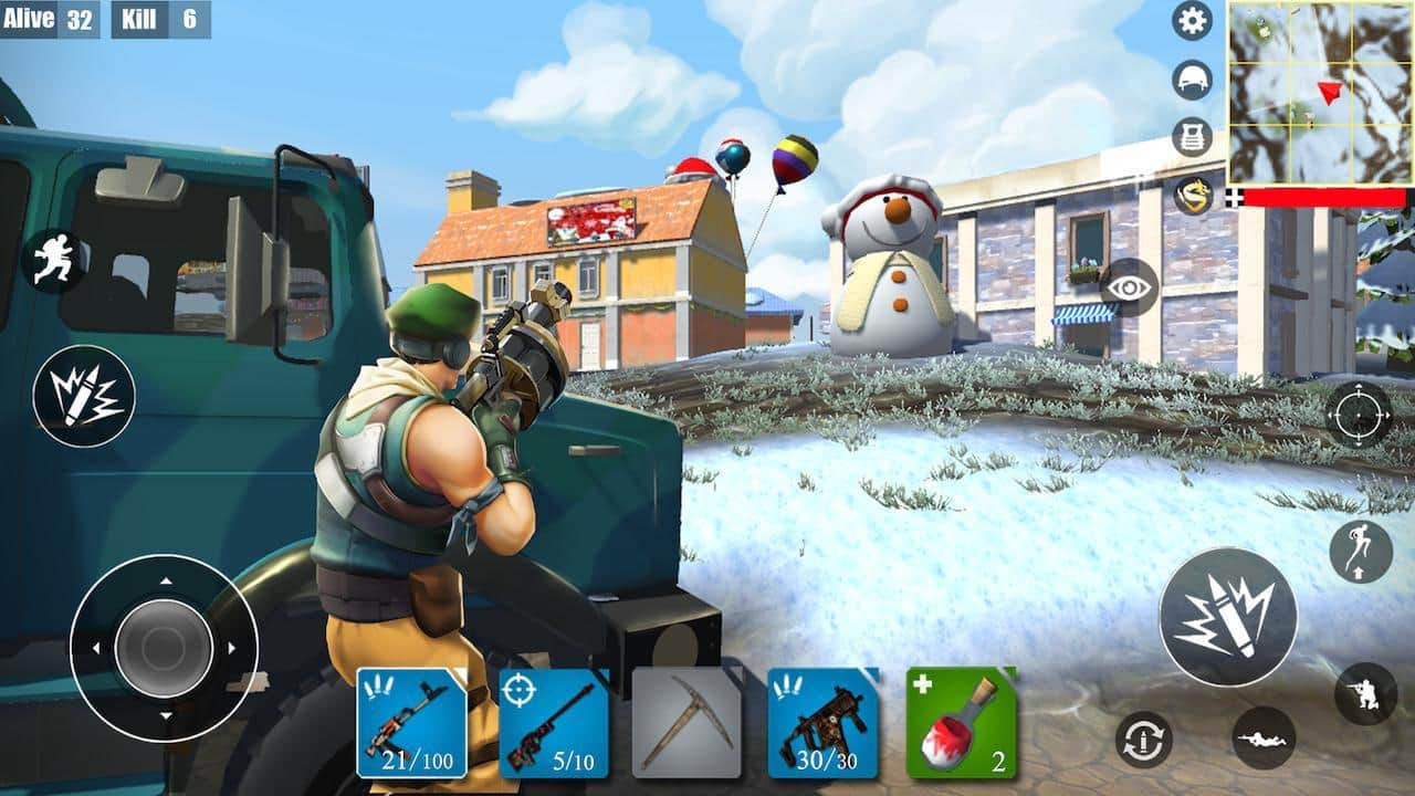 Campo de batalla – participa en una batalla épica que tiene lugar en un enorme mapa con jugadores de todo el mundo. Aterriza en una enorme isla y muévete por ella lo más rápido que puedas mientras intentas buscar armas y recursos útiles. Prepárate para batallas épicas, que se llevan a cabo en diferentes ubicaciones y anima a tu mascota que te permitirá moverte rápidamente a los lugares. Desbloquea escondites de armas y consigue trajes de héroe para hacer que su apariencia sea única. Caza a tus enemigos y desbloquea el primer fuego, sin dar a los oponentes ninguna oportunidad de ganar. Tu tarea principal será estar solo en el mapa.