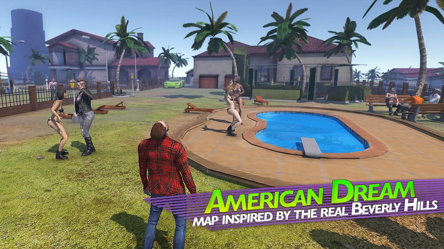 Battle Dogs: Juegos de Guerra de Mafia - un fascinante tirador para Android, donde te encontrarás en California en Beverly Hills. En este juego verás un enorme mundo donde podrás observar guerras de pandillas, tiroteos entre pandillas y juegos de mafia. En este juego, llegas en un barco a una ciudad sin ley, donde intentas construir tu negocio y enriquecerte. Completa diversas tareas y misiones y participa en robos, camina por la ciudad, vende y compra coches hermosos y trata de apoderarte del poder en la ciudad. En tu arsenal hay una enorme selección de diferentes armas que puedes usar en cualquier campo. Conduce diferentes vehículos, desde coches hasta tanques y barcos. Gana dinero y diamantes y haz lo que quieras.