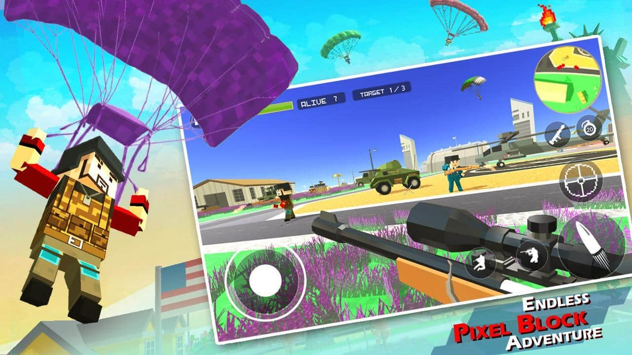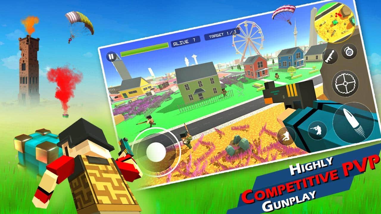 Battle Ground War – un fascinante shooter para Android, en primera persona donde desembarcarás en la isla donde está la batalla. En este juego se encontrarán varios jugadores, su objetivo principal es destruir a todos los enemigos y quedarse solo en la isla. Salta con un paracaídas y aterriza en la isla buscando a tus rivales. Busca refugio y armas que te permitan mejorar al héroe y hacerlo invulnerable. Participa en tiroteos masivos y crea clanes con tus amigos. Haz tu mejor esfuerzo para ganar el juego y ascender a la cima de la tabla de clasificación.