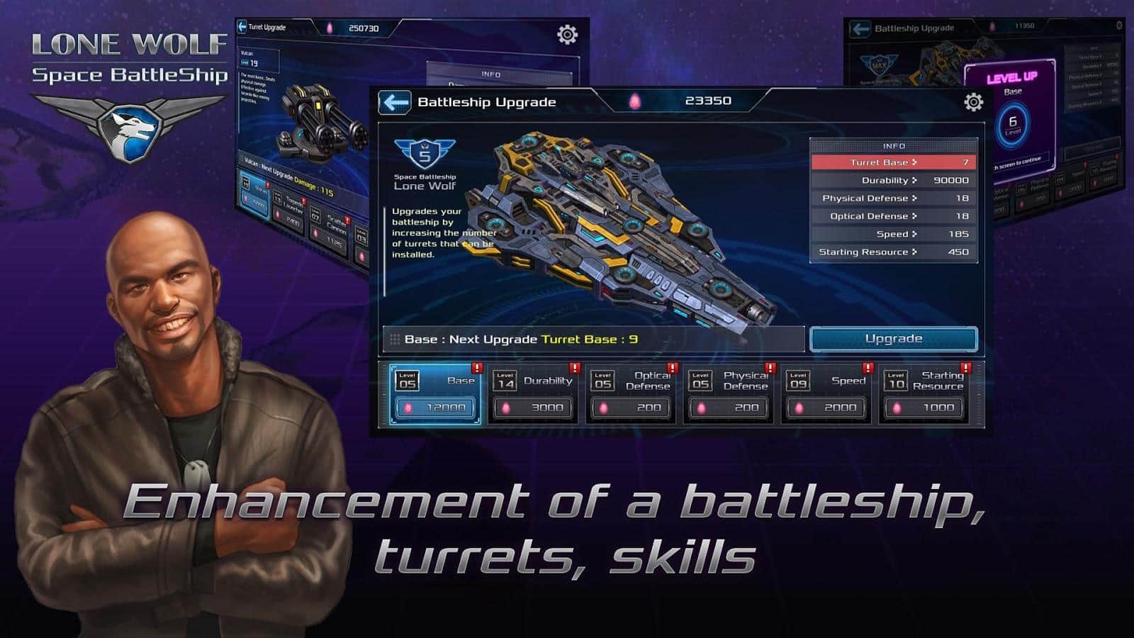 Battleship Lonewolf: Space TD - ¡Los desarrolladores te ofrecen participar en una gran aventura intergaláctica! Viaja a través del tiempo y los sueños, participa en épicas batallas con diferentes oponentes. No olvides mejorar tu nave, comprar nuevos cañones, instalar nuevos acabados y un motor más potente. Descubre nuevas tecnologías que te ayudarán en tus mejoras. El conflicto nunca termina. Continúa tu viaje en ambos modos: modo misión y supervivencia.