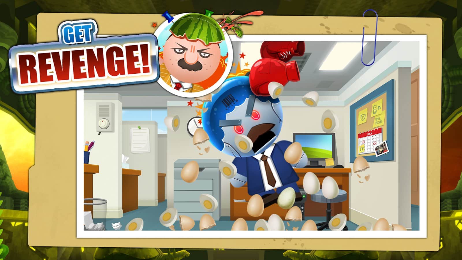 Golpea al Jefe: Armas Libres - un juego donde tienes que matar a más de 200 jefes molestos de diferentes maneras. Variado (oficina, jungla, casino, juegos, caja, cueva de abejas), armas interesantes (lápices, cáscaras de plátano, aviones, huevos, pistolas, plantas mortales, porras, pistolas de agua, tomates y muchas otras cosas). La única tarea - matar y avanzar a nuevos niveles. La escala de la vida de todos está a la izquierda, las armas a la derecha. Los jefes son bastante únicos, antes de atacar muestran el nombre y características personales. El juego está acompañado de efectos de sonido y animación.