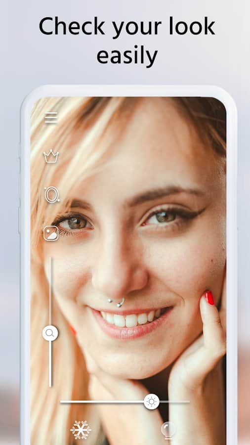 Aplicación de espejo - Cuando realmente necesitas mirar tu reflejo, y no hay espejo cerca, ¡esta conveniente y compacta aplicación te ayudará! Al habilitar la vista de espejo, tienes la capacidad de acercarte a pequeños detalles, aumentar o disminuir la luz incorporada, utilizar marcos de plantilla para espejos, y por supuesto, congelar la pantalla, deteniendo el momento donde lo necesites. En lugar de la cámara habitual del teléfono, los espejos cosméticos están más enfocados en el maquillaje, por lo que las ventajas del espejo son mucho mayores.