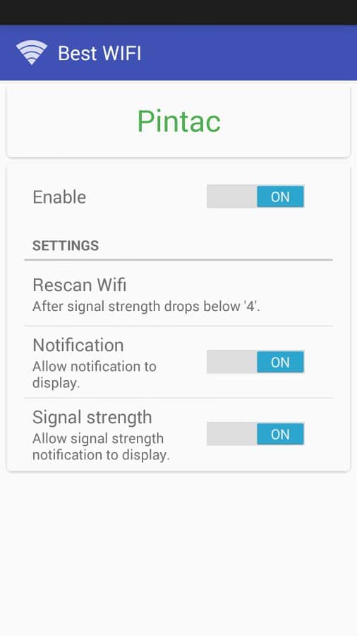 Mejor WIFI – aplicación muy conveniente y correcta del desarrollador Pintac para cambiar rápidamente entre puntos de acceso Wi-Fi. El programa está dirigido a usuarios que están en casa o en el trabajo y hay más de un punto de acceso Wi-Fi o Extensor Wi-Fi que permite cambiar automáticamente entre puntos de acceso (dependiendo del nivel de señal). En la configuración, puedes establecer el nivel de señal umbral para el cambio. Descarga e instala Mejor Wi-Fi en tu dispositivo y mantente conectado. ¡Disfruta!