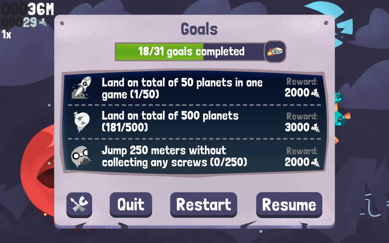 Beyond Gravity es un divertido juego de plataformas para Android, en el que tienes que saltar de un planeta rotatorio a otro. Salta de un planeta a otro y recoge las piezas que necesitas para la nave espacial. Cuanto más juegues, más rápido girará el planeta y la distancia entre ellos aumentará.