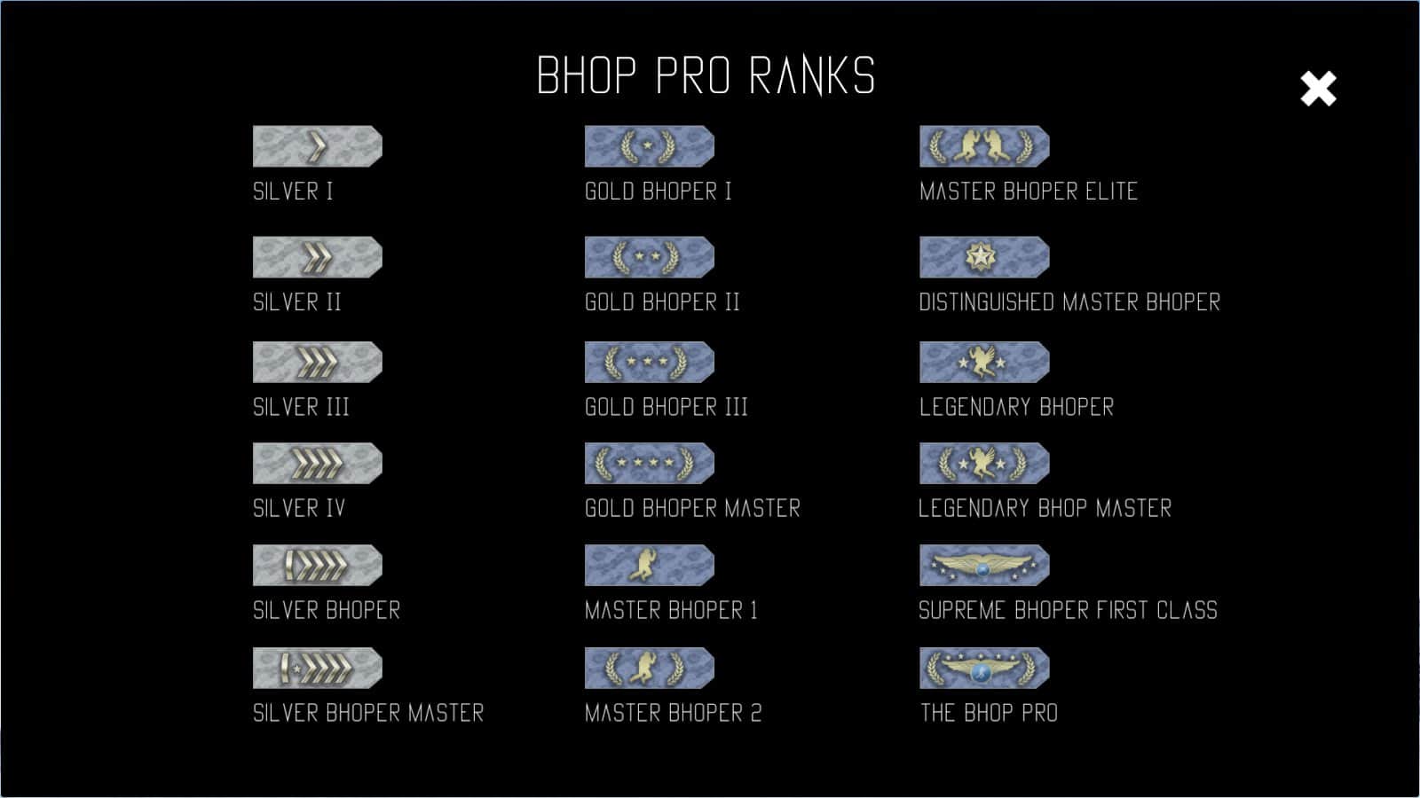 En muchos juegos, hay un esquema específico de saltos que contribuyen a una aceleración significativa del movimiento. Solo aquí aprender a hacer Bunny hop no resulta fácil para todos, aunque brinda una fuerte ventaja en el juego. Ahora Bhop Pro te ayudará a entender la física del movimiento y aprender a realizar este truco en casi todos los juegos. Usa materiales y herramientas auxiliares, capta el tempo, acelera y salta. ¡Obtén el mejor resultado en la tabla global de jugadores y muestra tu profesionalismo con experiencia en la práctica del Bunny hop!