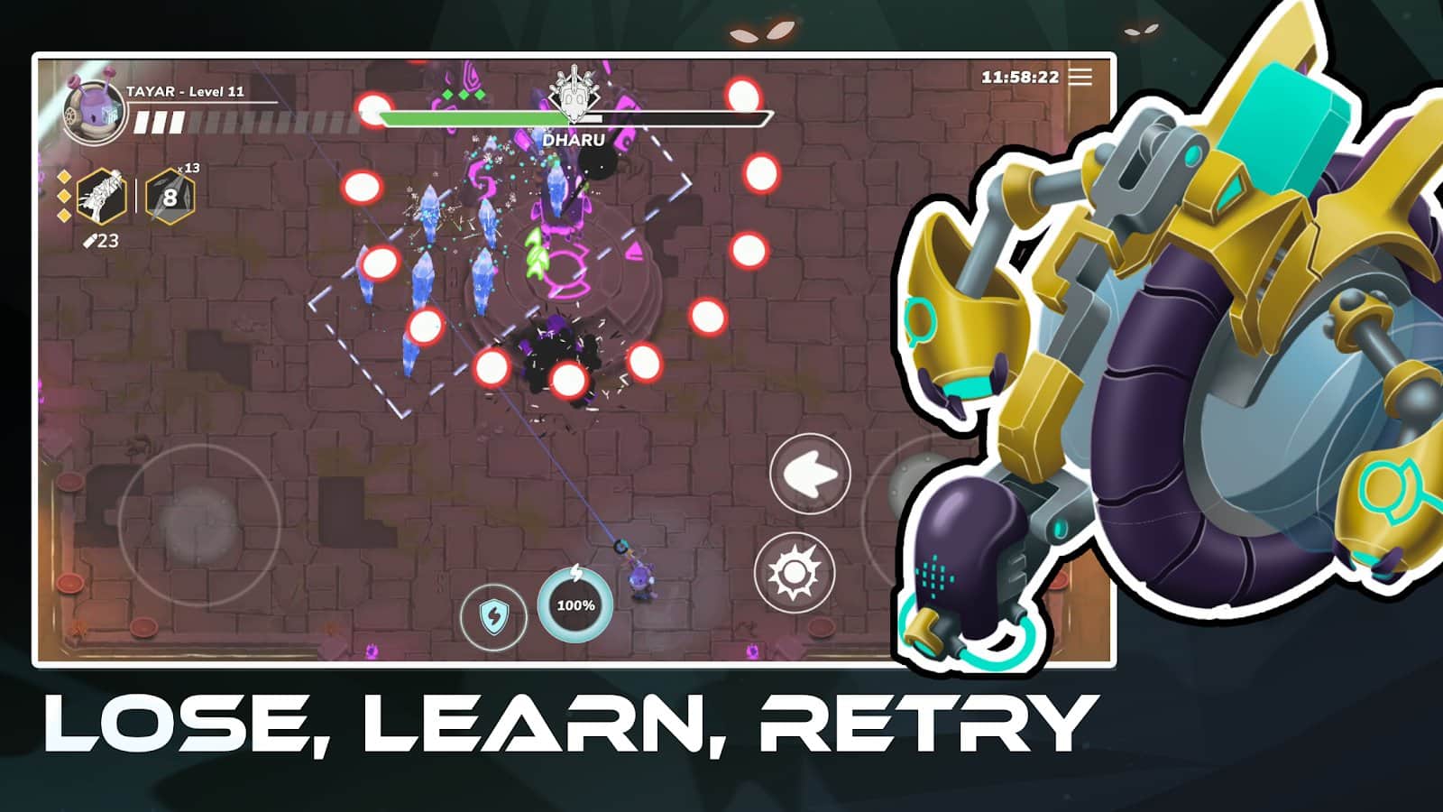 ¡Bienvenido al emocionante mundo de un tirador de rocas llamado Bibots, donde la lucha sin compromisos es la prioridad! Te espera un camino emocionante de exploración y purificación de áreas que están llenas de monstruos peligrosos. Desbloquea nuevas habilidades, personaliza tu personaje y lucha para salvar el mundo! Debes asumir el papel de Tayar, el explorador y salvador inesperado de su mundo natal, Takaful. Pero Tayar no está solo en su deseo de cumplir esta gran misión. Conoce al Bibot elegido: una antigua criatura mecánica que descubre accidentalmente. Y gracias a su conexión con Bibot, Tayar adquiere la habilidad única de transformarse en una de estas poderosas criaturas mecánicas.
