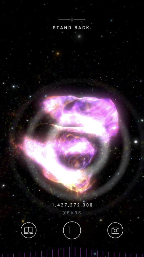 Big Bang AR – descubre un mundo virtual de realidad aumentada donde observarás la creación del universo. Sé testigo de la formación de las primeras estrellas del universo a través de una explosión. Tus ojos formarán todo el sistema solar y el planeta que llamas hogar. En este juego retrocedes en el tiempo a hace 13.8 millones de años y descubres cómo se formaron el espacio, el tiempo y el universo. Descubre la verdad sobre los bloques de construcción microscópicos de los cuales está hecha toda la materia, e incluso nosotros.