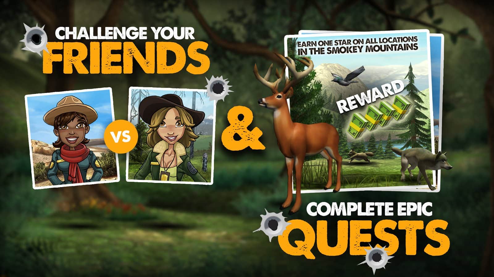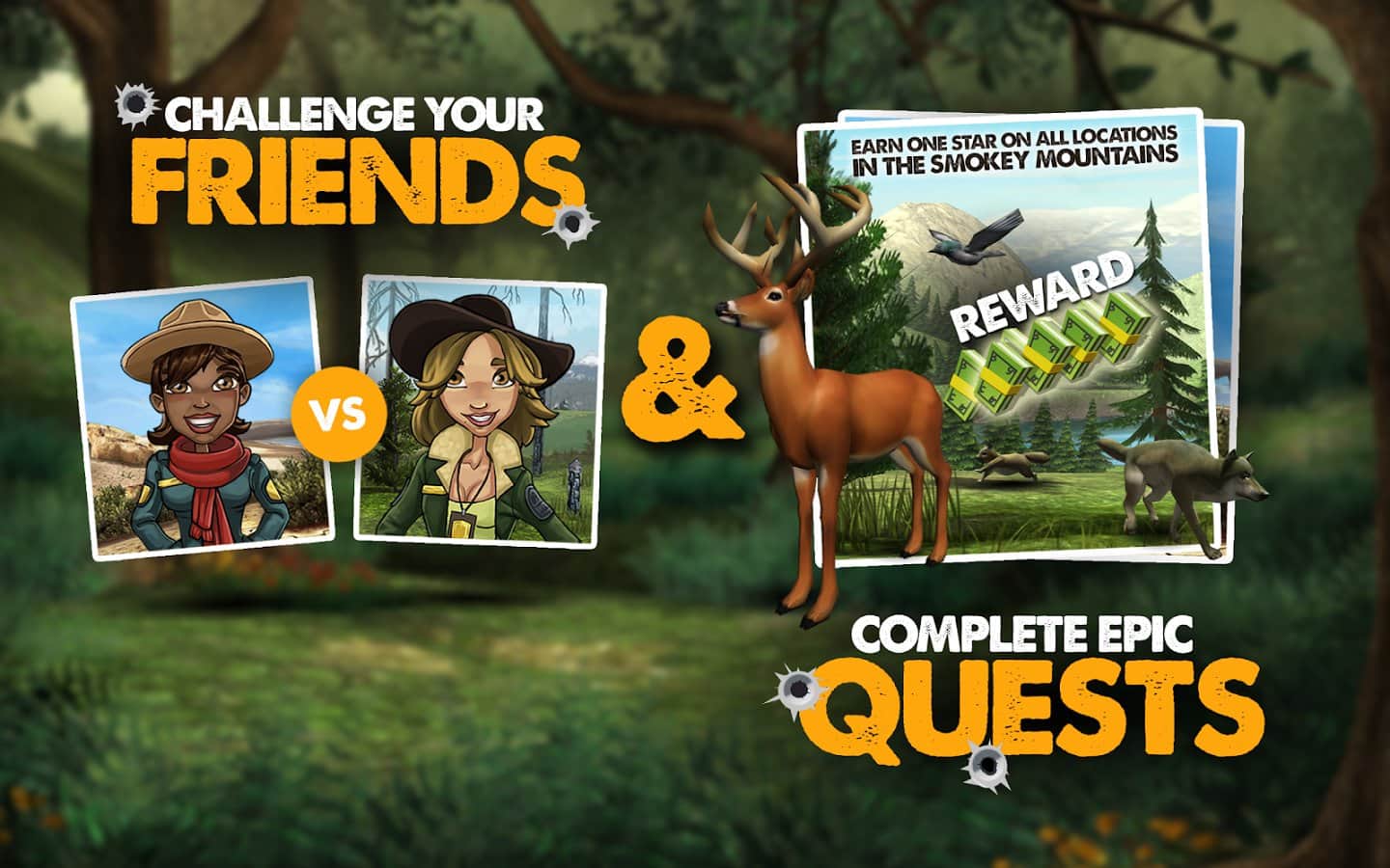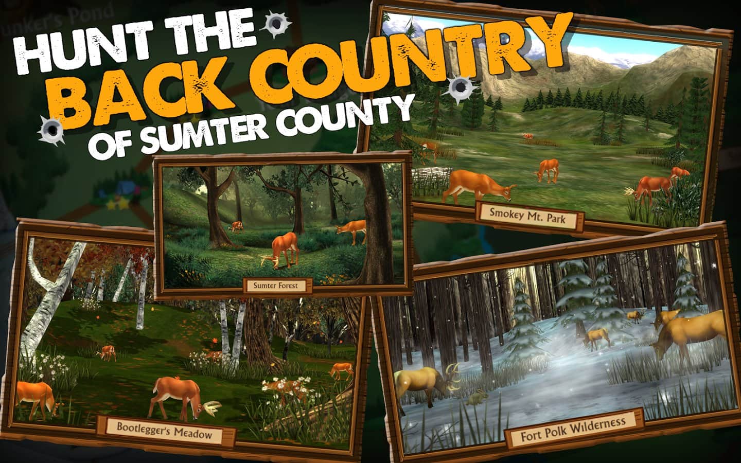 A lo largo de su historia, el estudio desarrollado por Flashman Games LLC, para la plataforma Android, ha lanzado algunos juegos, pero vale la pena señalar que todos los proyectos fueron de calidad suficientemente alta. No es sorprendente porque Flashman Games LLC tiene experiencia en el desarrollo para otras plataformas de juegos. Así que, ante nosotros un nuevo proyecto de Flashman Games LLC bajo el nombre Big Buck Hunter, la idea general del juego, por supuesto, no es nueva, tu trabajo es ir a cazar para intentar conseguir más ciervos, mientras usas todo tipo de dispositivos y, por supuesto, un rico arsenal de armas. El juego está hecho en el estilo de un clásico, pero para más variedad, los desarrolladores han mezclado la jugabilidad con todo tipo de misiones, tareas y minijuegos.