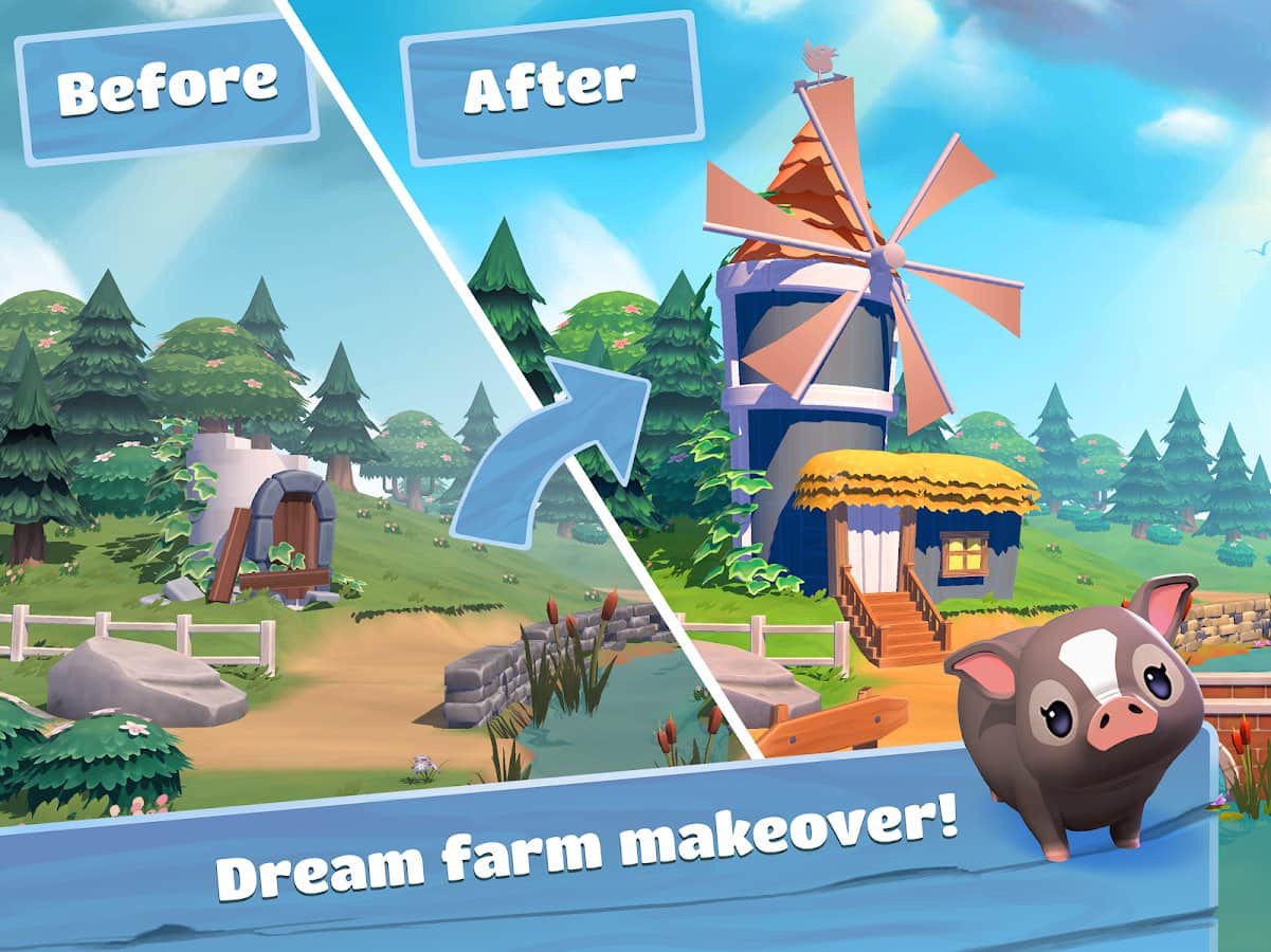 Big Farm: Hogar y Jardín – un genial juego de rompecabezas tres en fila en el que podrás pasar niveles y ganar puntos y dinero para gastar en la restauración de granjas. Convierte la granja abandonada en un verdadero complejo poblado de animales. Sin embargo, puedes cultivar jardines y vender la cosecha, ordeñar y obtener otros productos naturales. Cuanto más avanzas, más difícil será caer y más interesante será la misión. Considera tácticas para lograr el progreso. Elige un diseño y crea un terreno único de maestro.