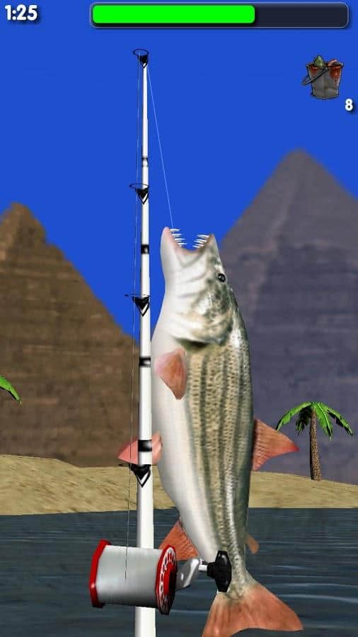 Big River Fishing 3D – un excelente simulador para Android, donde podrás pescar. En este juego te embarcarás en un viaje peligroso y emocionante a través de los cinco ríos más famosos del mundo donde atraparás peces. Explora la densa jungla amazónica, navega por las antiguas ruinas a lo largo del Nilo y disfruta de los hermosos paisajes del poderoso Misisipi. En este juego tendrás una gran oportunidad de atrapar más de 20 especies de peces que van desde pequeños hasta enormes. Realiza numerosas misiones del juego y utiliza diferentes aparejos y cebos. El juego deleitará a los jugadores con gráficos coloridos, grandes vistas y peces que serán muy realistas.