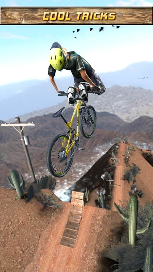Bike Dash – emocionantes carreras en bicicleta de montaña por diversos terrenos difíciles. Siente la adrenalina mientras recorres senderos peligrosos y compites a velocidades vertiginosas por descensos arriesgados. Evita obstáculos peligrosos cuando sea posible y utiliza diferentes trucos emocionantes. El juego combina carreras en bicicleta de montaña en diversas pistas con un corredor infinito. Al realizar trucos, ganarás monedas que luego podrás usar para comprar nuevas bicicletas y varios equipamientos. En el juego, puedes cambiar entre la vista en primera persona y la vista en tercera persona. Hay una tabla de clasificación mundial.