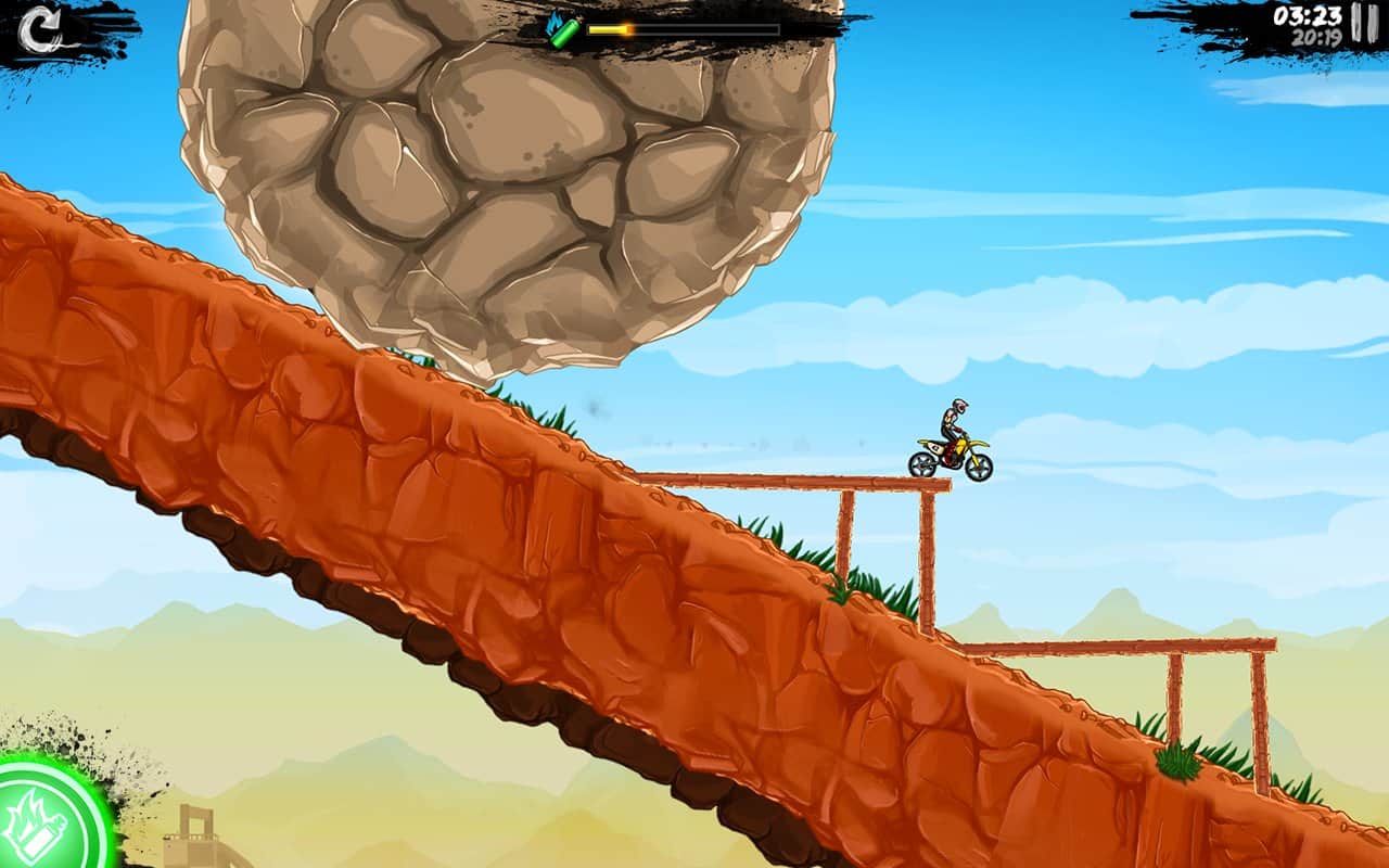 Bike Rivals - juego de motocross de Miniclip con obstáculos espectaculares y variados. Comprueba tus habilidades en el manejo de la motocicleta y trata de llegar a la meta en poco tiempo y conseguir tres estrellas. La jugabilidad rápida con increíbles acrobacias, caballitos y giros hacen que este juego sea interesante para los fanáticos de este género. Participa en esta carrera y establece tu récord.