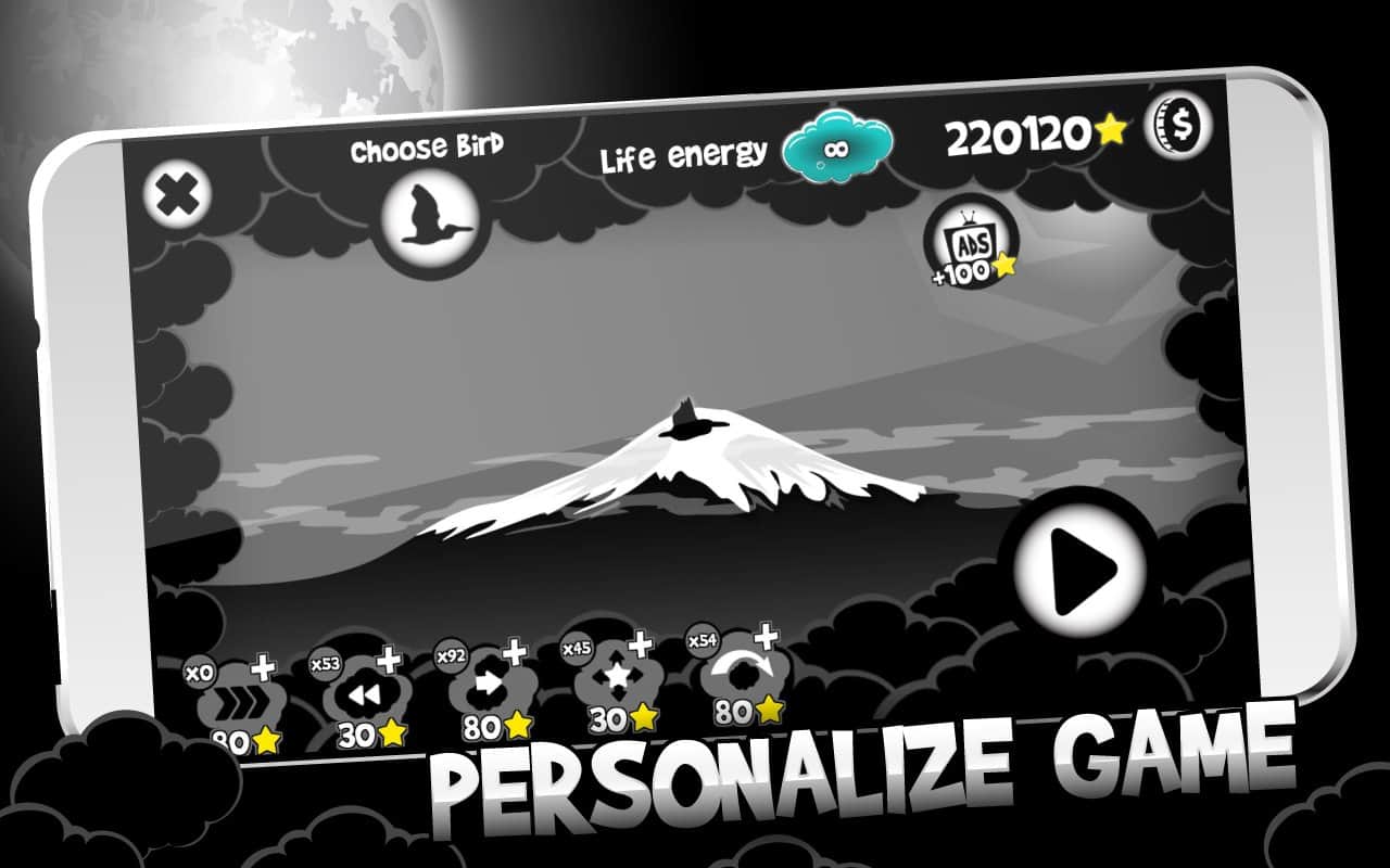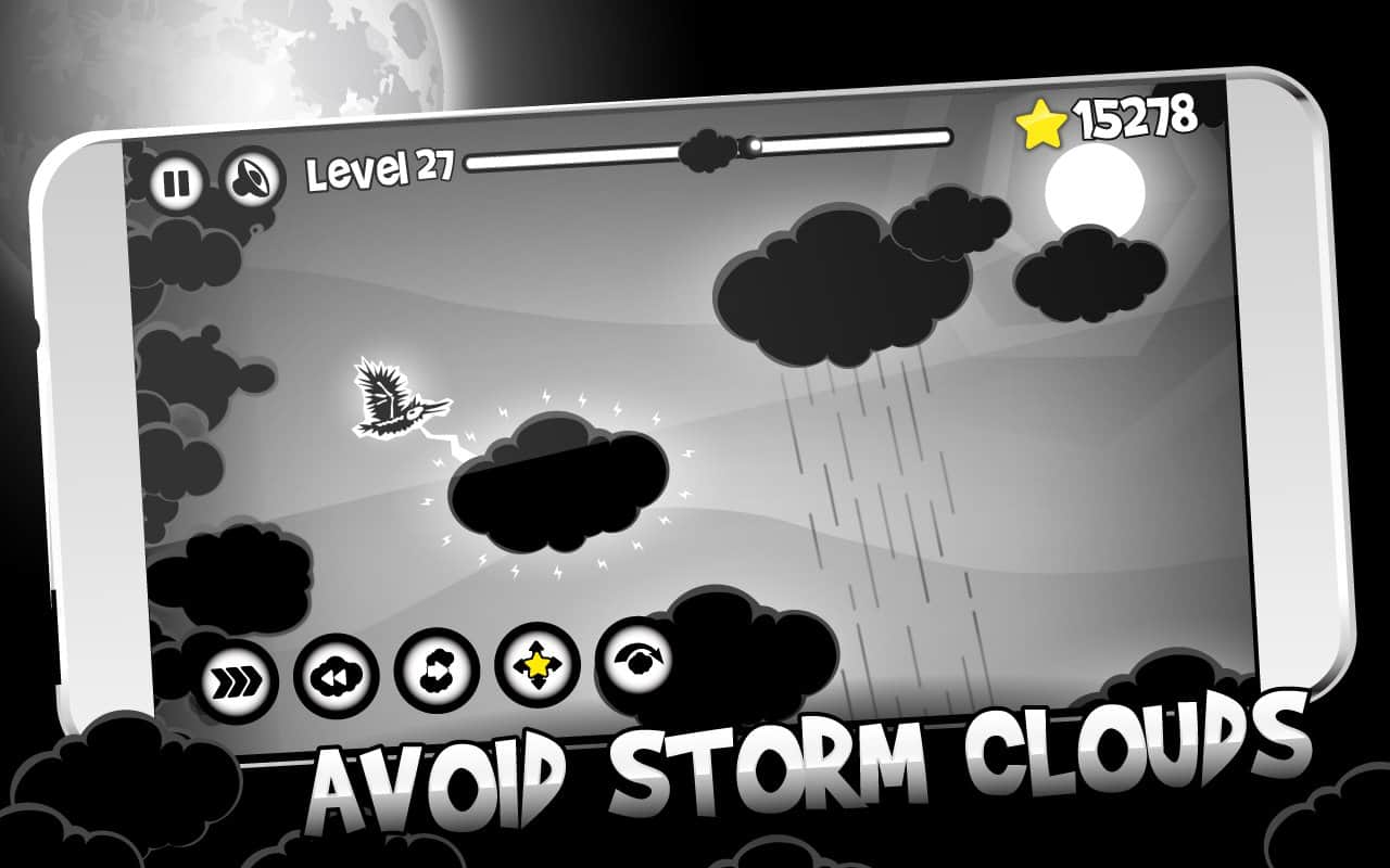 Juego: Cielo Nocturno (No lanzado) – guía a tu ave a través de varios niveles de este juego tratando de alejarla de la tormenta que se aproxima. Mueve tu ave hacia adelante y evita todos los obstáculos y dificultades en su camino, en forma de nubes, lluvia y viento. A lo largo del camino, recoge estrellas doradas y bonificaciones y vuela lo más rápido posible para no ser alcanzado por la tormenta. Durante el juego, desbloquea nuevas aves como el colibrí, el pingüino, el murciélago e incluso un ave mecánica. Si no puedes pasar un nivel, entonces solicita la ayuda de bonificaciones que te ayudarán a: acelerar lejos de la tormenta que se aproxima, evitar nubes, recoger tantas estrellas como sea posible y usar el teletransporte.